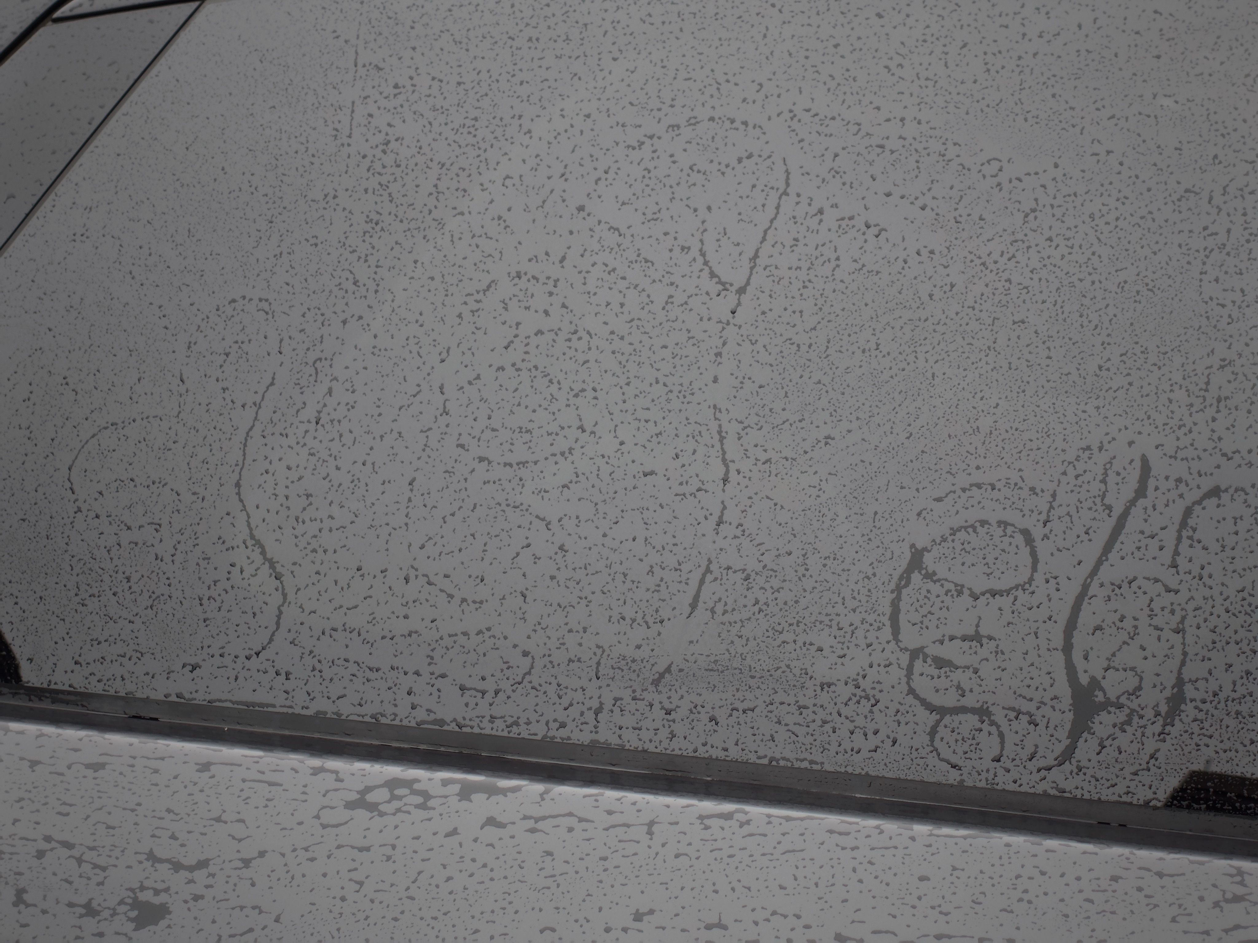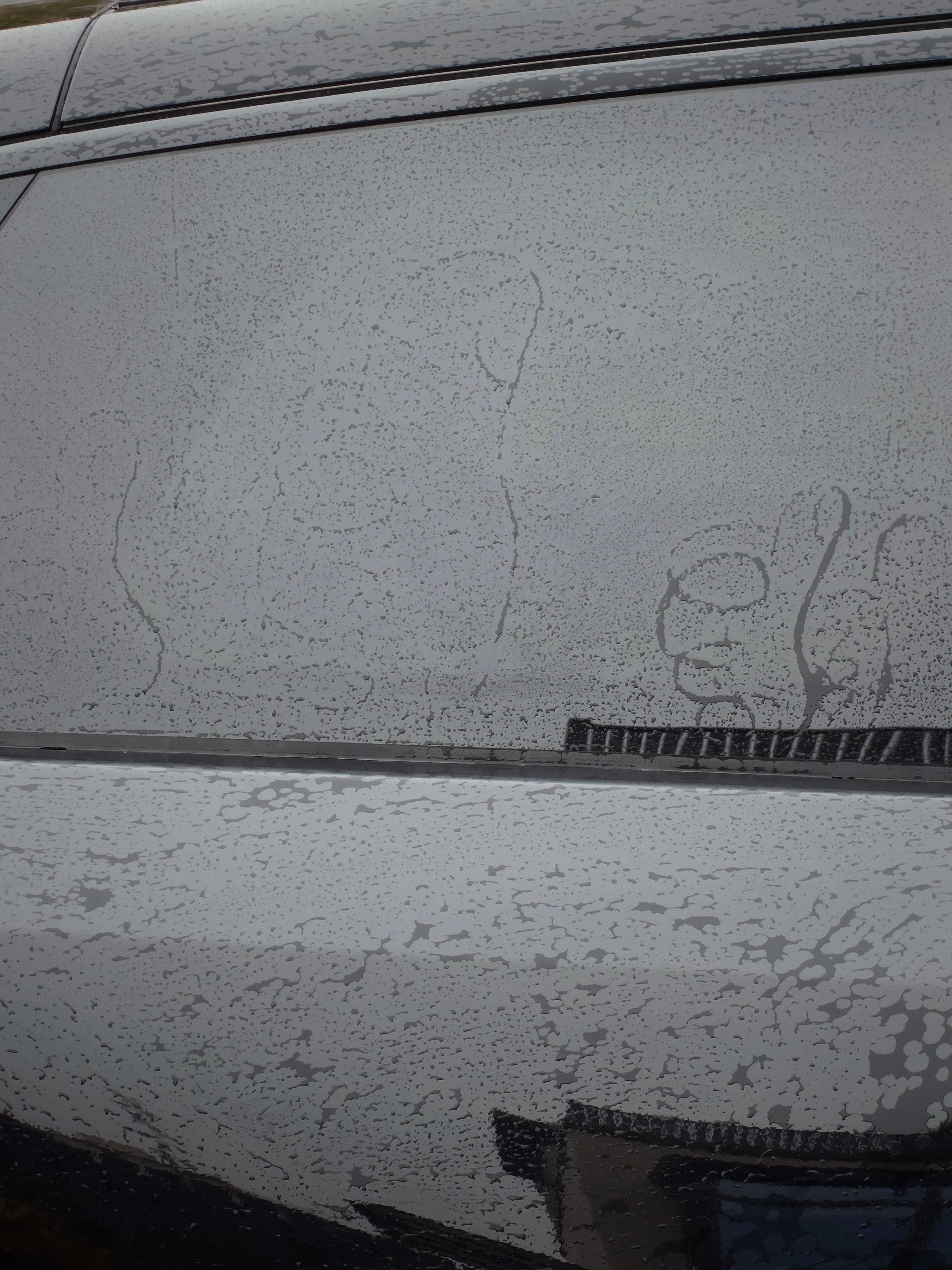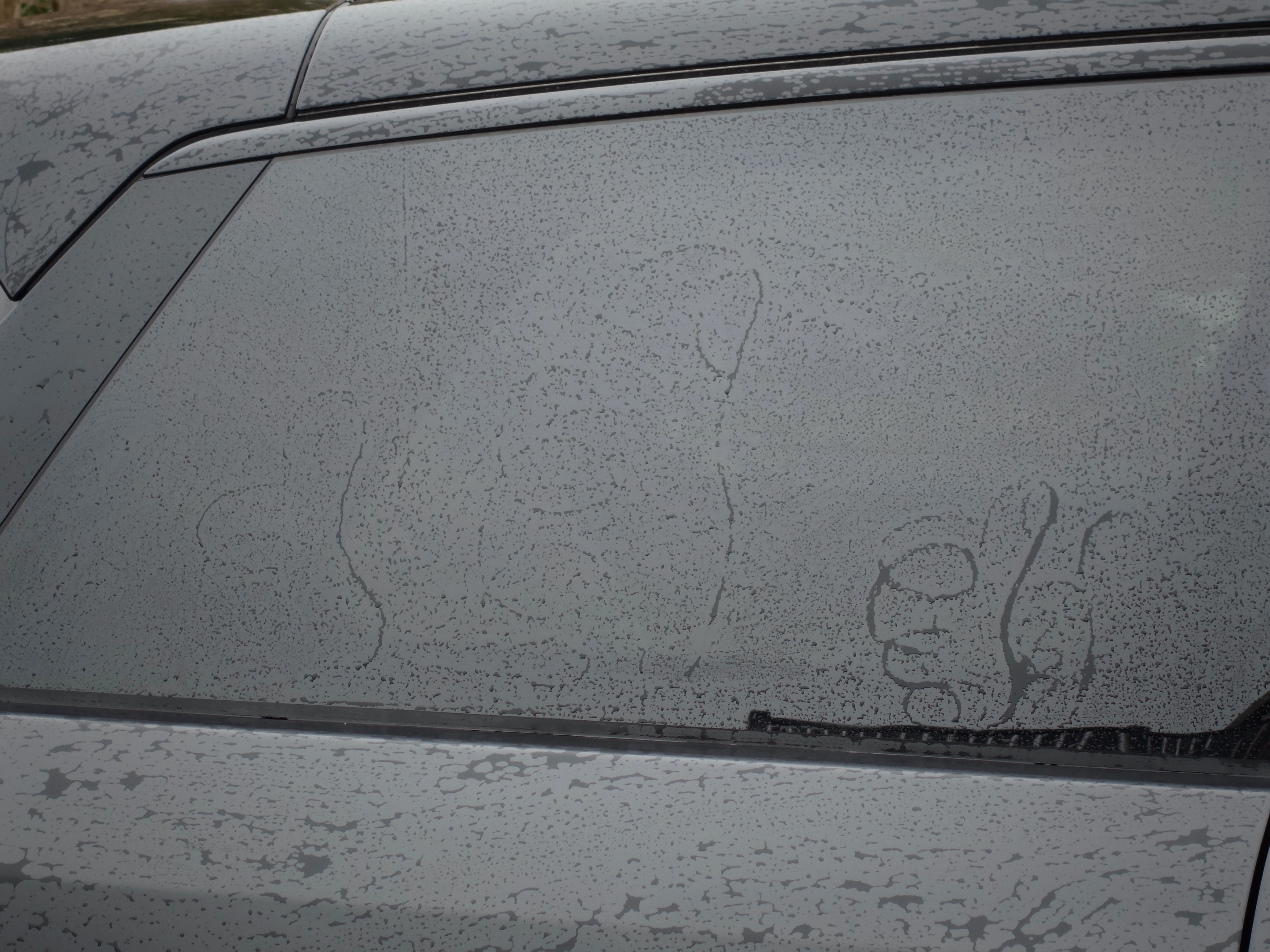 卧槽!给蔚来ES8洗完车之后三排小窗出现了一些规则型水渍这图案是啥意思