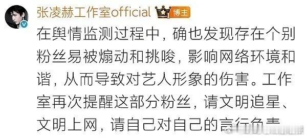 张凌赫工作室回应舆情张凌赫工作室提醒粉丝文明追星 回应舆情清晰有力,抵制造谣与私生行为,更引导粉丝文明追星,让饭圈回归纯粹与理性。