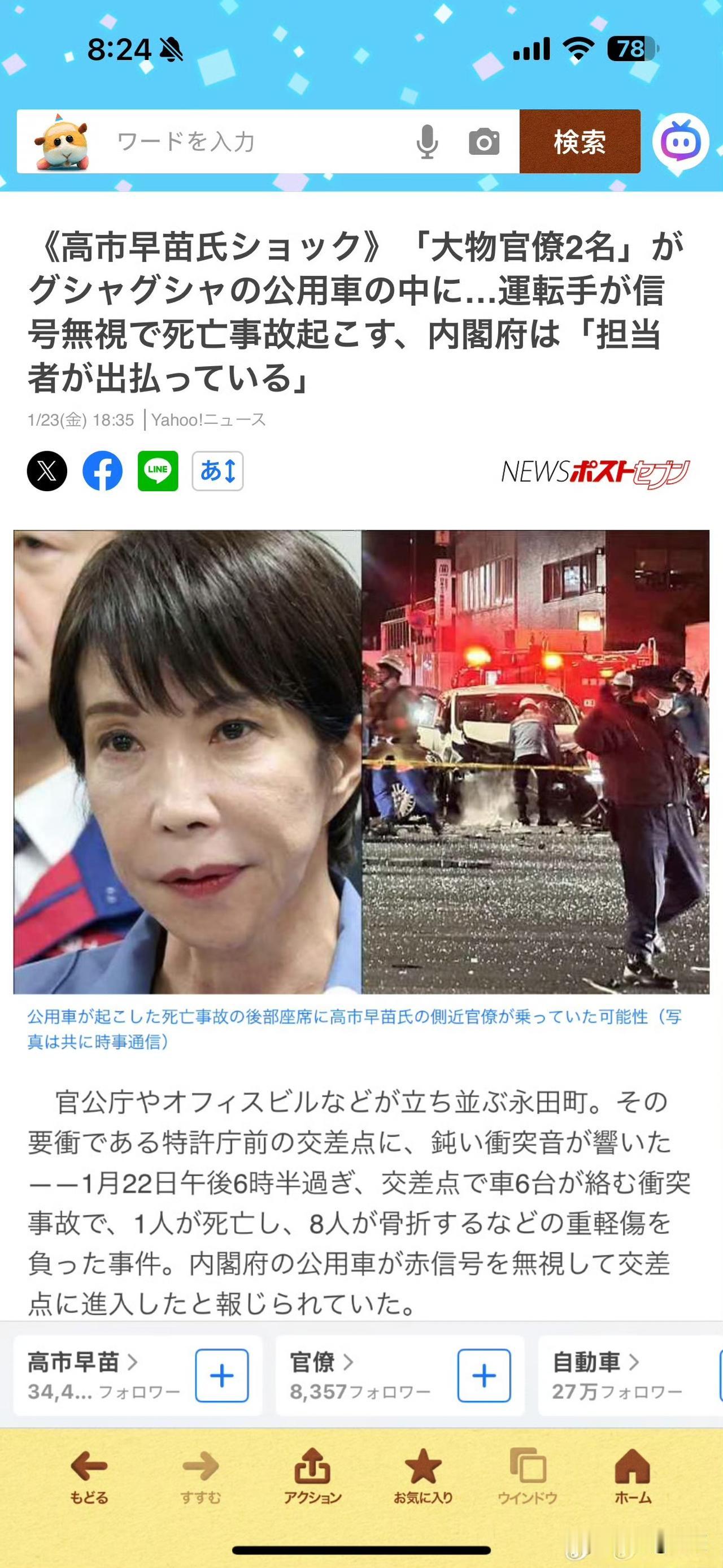 【东京突发】1.22傍晚东京6车相撞致1死8伤,肇事方为日本内阁公务车,系闯红灯闯入路口所致! 车内2名重伤者是高市早苗内阁核心成员,常年负责国会答辩,恰逢高市刚解散众议院筹备大选,此次事故对其阵营打击巨大💥