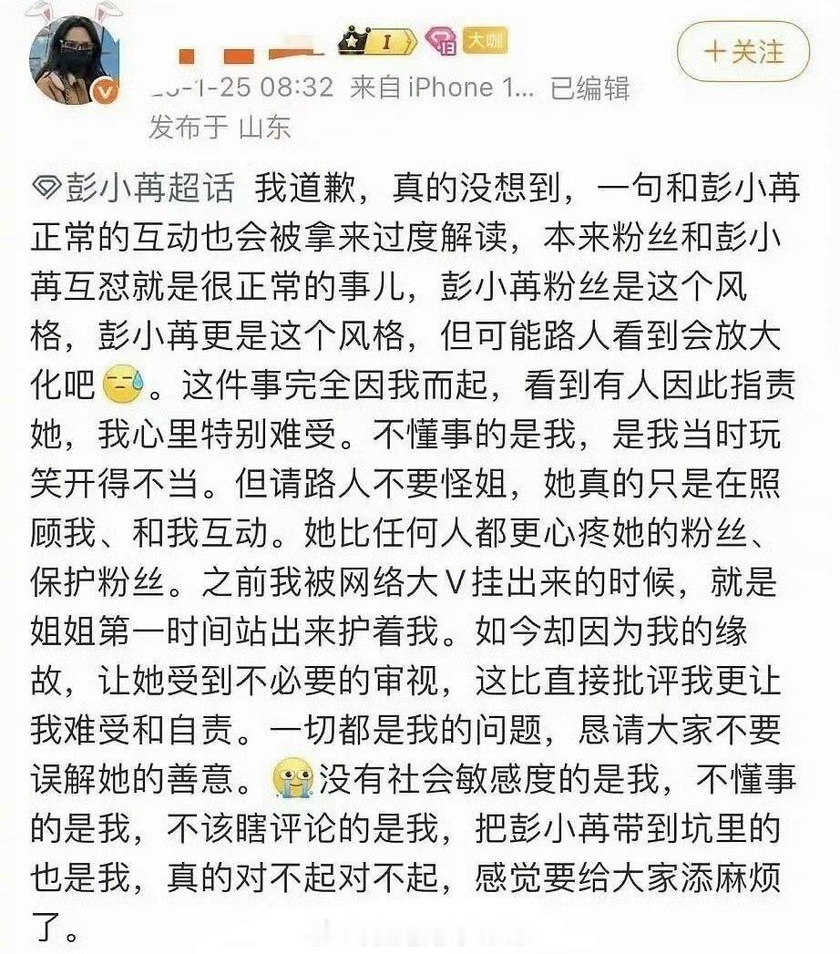 被彭小苒祝“天天加班”的粉丝出来道歉了,说彭和粉丝喜欢互怼。本意是好的,但是说都是自己错这类的话雪上加霜了,冷处理就好了,反正明星都会被各种说彭小苒 祝你天天加班彭小苒回复粉丝祝你天天加班