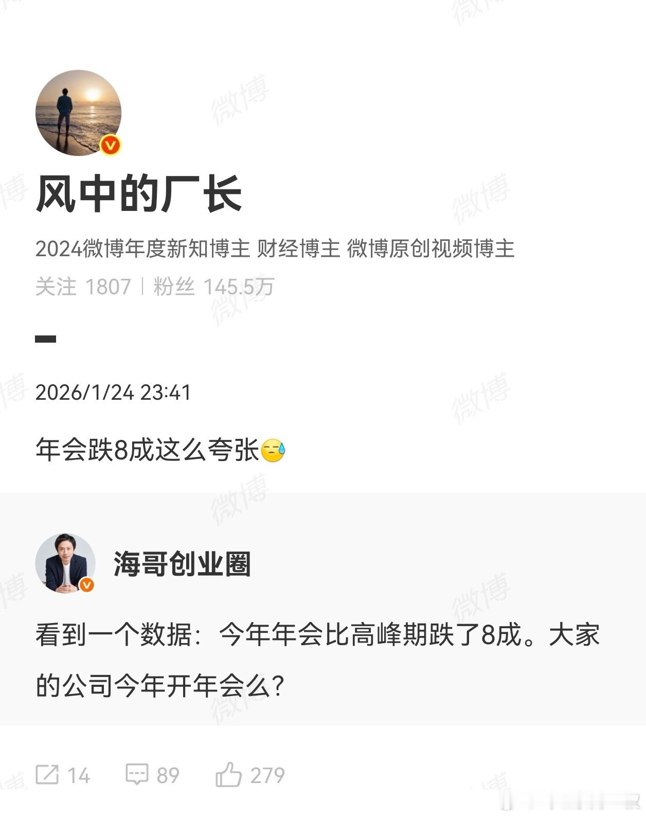 开不开年会,不仅仅代表上一年经营业绩,其实也是老板(管理层)的一种心气。仅仅想维持的,基本无所谓年会。想积极向上的,大概率会操心红红火火、热热闹闹的年会,鼓舞士气。注:不是员工的想法,背后是老板管理层的积极态度。今年年会确实有点冷,也许和过年晚有关系吧。