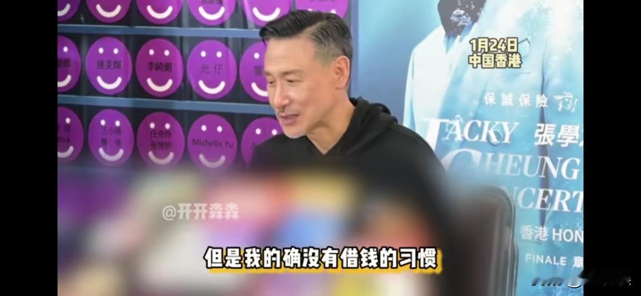 1月24日,张学友受访,回应欠债与借钱传言。 1月24日晚,张学友在中国香港红馆完成了他为期两年半的60+演唱会的最后一场秀。 出生于1961年7月的张学友今年64岁了,两年半来,他一共在全世界各地开了324场演唱会,平均几天一场,得在台上又唱又跳,如此高强度高密度的体力活他硬生生的撑下来了,终于圆满收官了。 1月24日,在红馆演唱会结束后,他受访说,自己是个节俭的人,没有大手大脚,也有存钱的习惯,没有借钱的习惯,没有欠债。 张学友算是正面回应了关于自己被妻子罗美薇乱投资败光家产欠下巨款所以才这么拼开演唱会的传言。 他还风趣地说:“总之,我不出来便没事,一出来便有这些传言。” 张学友很难得,与罗美薇结婚多年零绯闻,爱家爱妻子爱孩子还很努力赚钱。 他在香港的最后这场演唱会有众多好友前来支持,有近期翻红的章小蕙的前夫钟镇涛夫妇,张家辉夫妇,梁家辉夫妇,萸澄庆夫妇,胡枫等,可见他的人缘非常好。