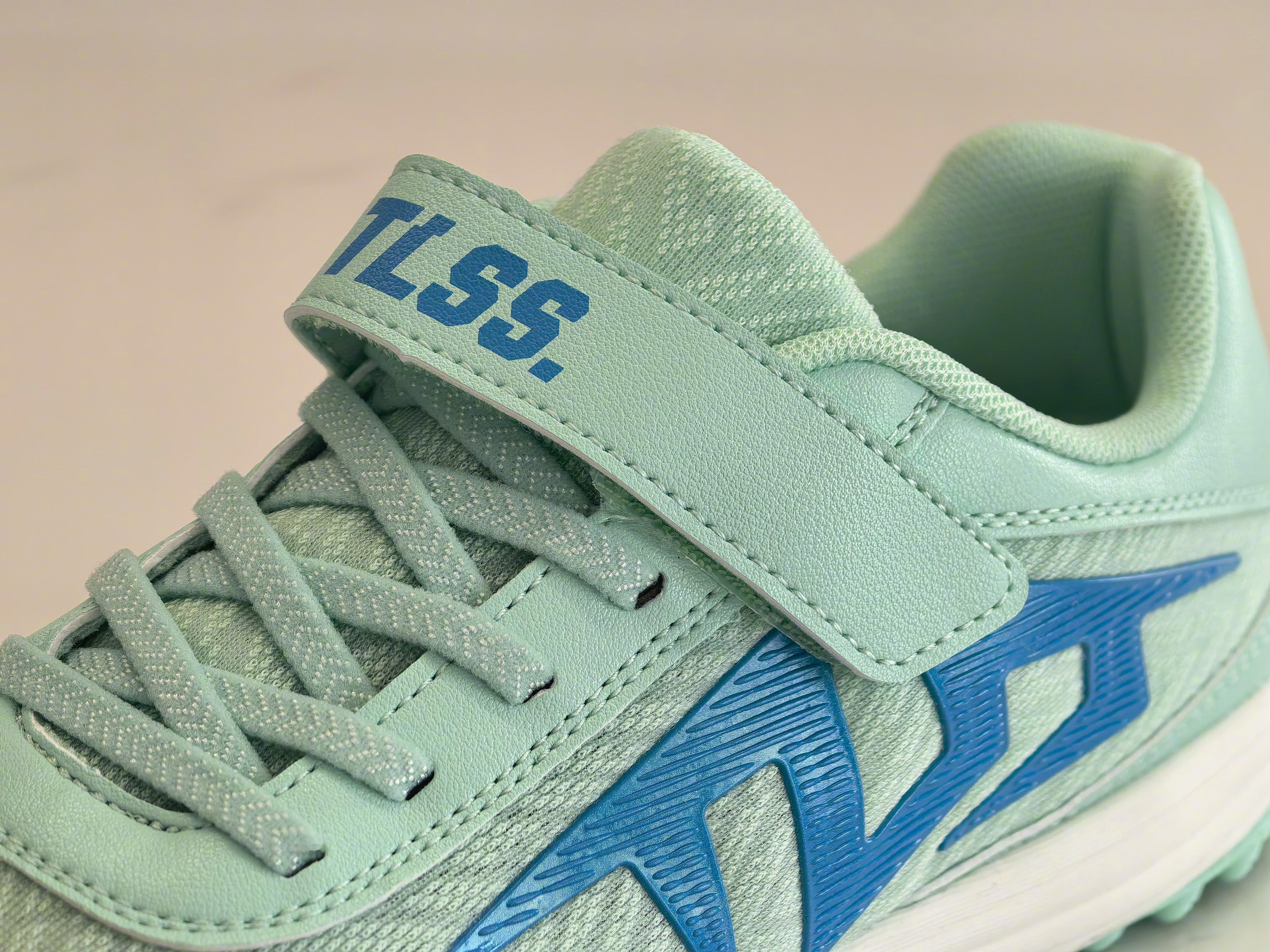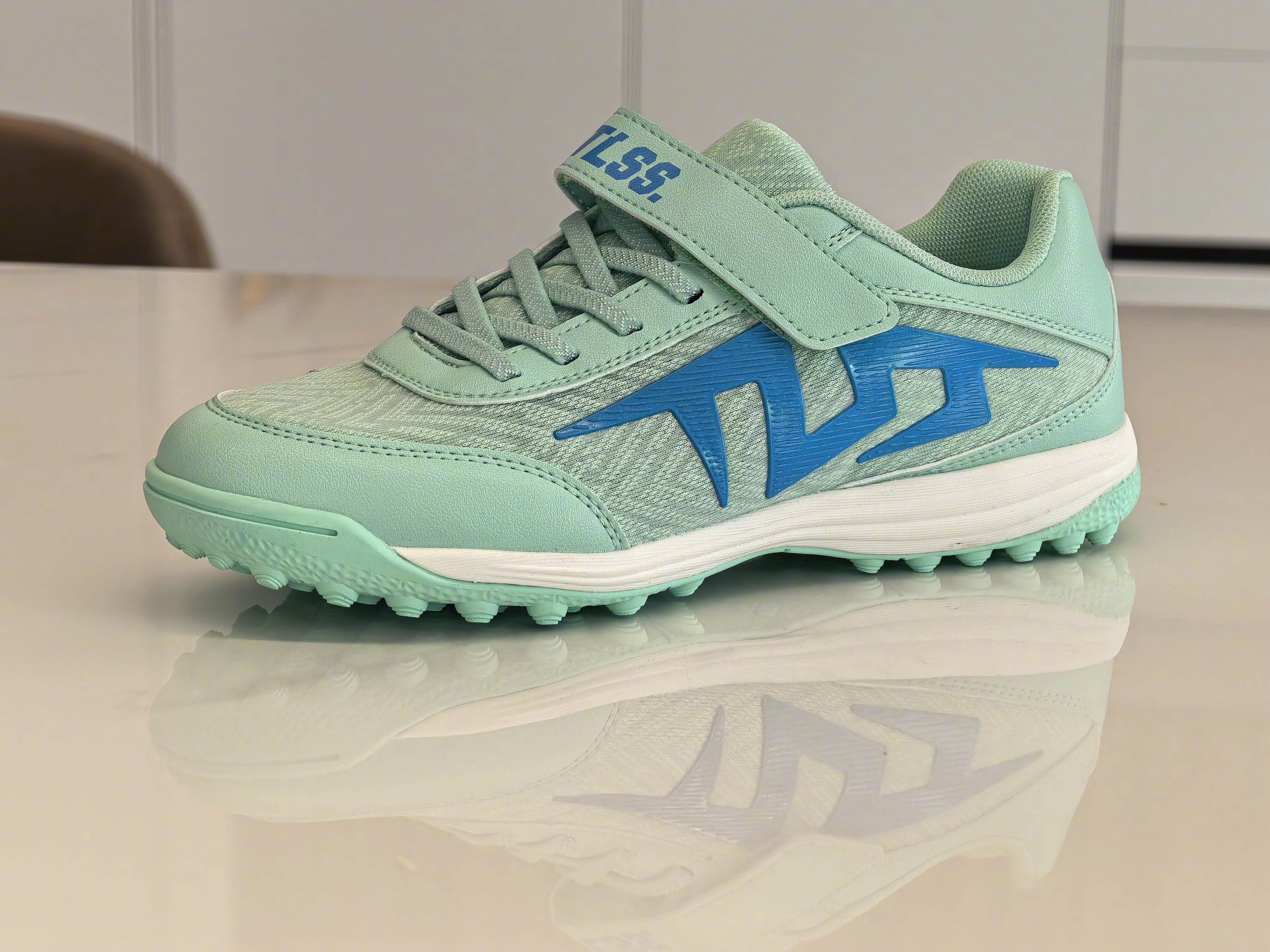这个儿童足球鞋不错,核心理念是减震,这款也不贵。TLSS是国产精品足球鞋,很多顶级巨星明星穿,比如:国足张稀哲、博主韩路等。首先TF碎钉对儿童膝盖压力小,另外白色EVA外层中底缓震效果很好、鞋垫下面的黄色夹层中底继续提供减震效果、它这款鞋垫自身减震效果也不错。另外,针对儿童系鞋带问题,直接提供脚背松紧带和魔术贴搭扣固定方式,儿童自己可以系紧。鞋子是PU加高强度织物,尤其经常折叠区是高强度织物,避免频繁折叠PU断裂的问题。具体型号见图6。