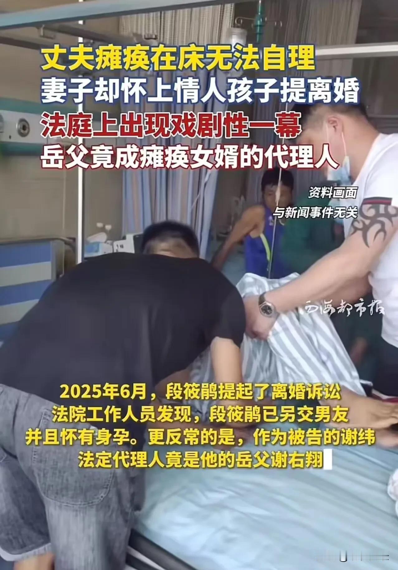 在这个看似平凡却充满荒诞色彩的家庭故事中,我们似乎看到了人性最深处的复杂与矛盾。丈夫瘫痪在床,曾经的伴侣却在他最无助的时刻选择了背叛,怀上了情人的孩子,并在法庭上提出离婚。这一幕,不仅让人震惊,更让人深思:在爱情与责任、道德与利益的天平上,我们究竟站在哪一端? 故事的高潮,竟然出现了令人匪夷所思的“戏剧性一幕”——岳父成为瘫痪女婿的代理人!这不仅是家庭伦理的扭曲,更像是一场荒诞的戏剧,揭示了在法律与人性交织的复杂局面中,谁才是真正的“赢家”? 有人会问:丈夫瘫痪后,妻子有权提出离婚,这是法律的底线,没人能否认。但在这背后,隐藏着更深层次的道德考量。她在丈夫最脆弱、最无助的时刻,选择了“出规怀孕”,难道这不是对人性的极大伤害?这不仅违背了基本的伦理,更像是一场对法律底线的挑衅。 网友们的怒火也在持续燃烧:“丈夫瘫痪后,妻子可以选择离婚,但不能在离婚前怀孕,这样做明显违背民法良俗!”有人质问:这样的行为,究竟是利益的驱使,还是道德的沦丧?在这个故事中,我们看到了人性中那些阴暗的一面,也反映出社会对于“责任”与“道德”的不断拷问。 然而,更令人深思的是,岳父成为代理人的那一幕。这不仅仅是家庭成员的“奇葩”操作,更像是一面镜子,映照出在利益面前,传统伦理的脆弱与崩塌。我们不得不问:在现代社会,法律能否真正守护每一个人的尊严?家庭的纽带还能承受多少压力?当人性逐渐被利益绑架,社会的道德底线还能坚守多久? 这场闹剧背后,隐藏着无数家庭的隐痛与无奈。或许我们都曾在某个角落,面对过类似的困境:爱与责任的抉择,信任与背叛的边缘。每个人心中都藏着一个故事,而这个故事的结局,或许正是我们每个人都在不断书写的现实。 这不仅仅是一个家庭的悲剧,更是社会的一面镜子。它提醒我们:在追求个人利益的同时,不能忘记那些最基本的道德底线。我们要坚信,善良与责任,才是家庭和社会的基石。而面对诱惑与背叛,我们更应保持清醒,用法律与道德共同守护那份最纯粹的信任。 这篇故事,激起了无数人的共鸣,也引发了广泛的讨论。有人说:“这样的家庭,令人心碎,但也提醒我们要珍惜身边的人,守住那份最初的善意。”有人则愤怒:“法律要保护弱者,但不能成为伤害他人的工具。”更有人呼吁:“社会应加强道德教育,让这样的荒诞不再重演。” 在这个充满变数的时代,我们每个人都在用自己的方式守护着那份温暖。或许,我们无法改变所有的悲剧,但可以从自己做起,用善意与责任去影响身边的人。因为,只有当每个人都坚守底线,社会的未来才会更加光明。 这故事告诉我们:家庭的温暖,法律的正义,道德的底线,都是我们共同的责任。让我们一起反思,一起守护,让这样的荒诞不再成为现实的常态。因为,真正的幸福,是建立在责任与爱的基础上的,而不是利益与背叛的舞台。家庭矛盾婚姻 丈夫 家庭悲剧