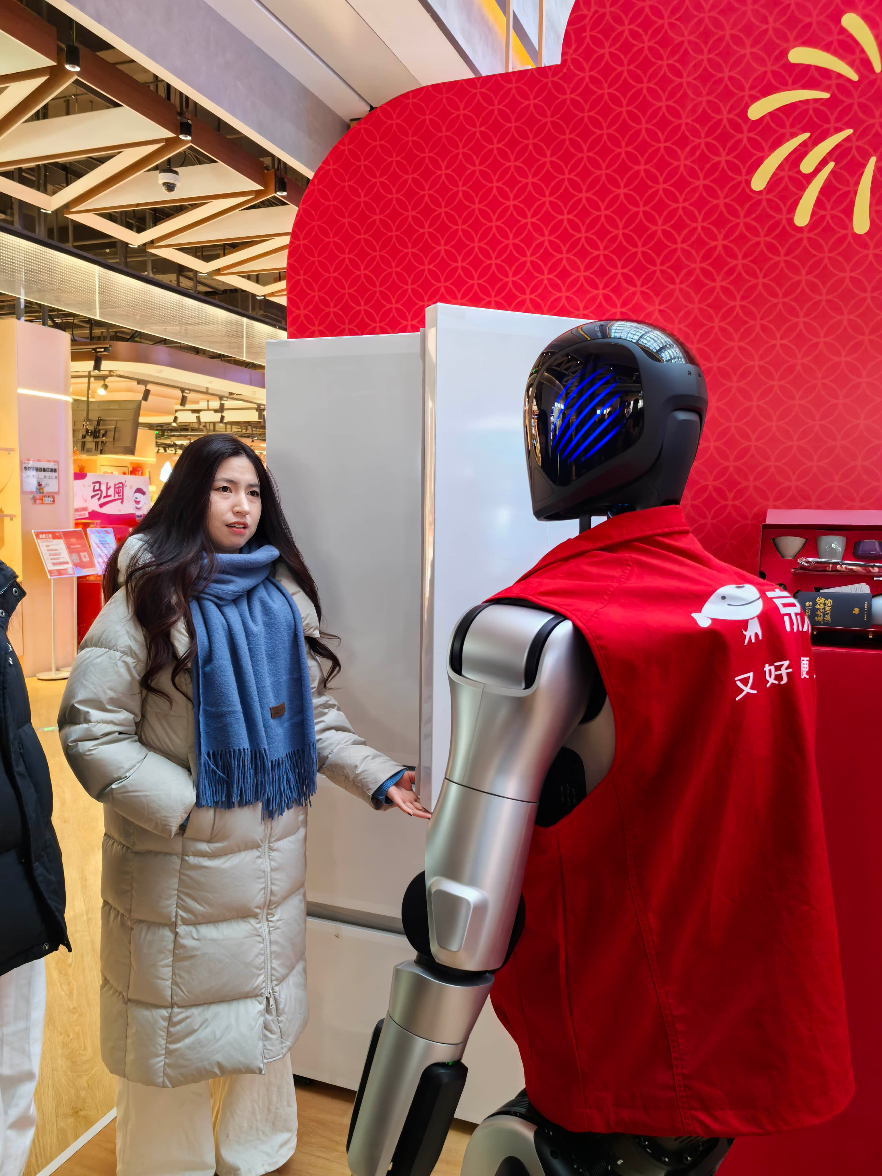 没想到在商场看了一出“职场宫斗剧”!📺 机器人偷偷把同事给卖了 主角是机器人,配角是惨遭被卖的扫地机和冰箱。这机器人在 京东MALL 为了讨好顾客,真是使出了浑身解数,比心飞吻三连击,这谁顶得住啊!💘 这波营销属实被玩明白了!🛋️