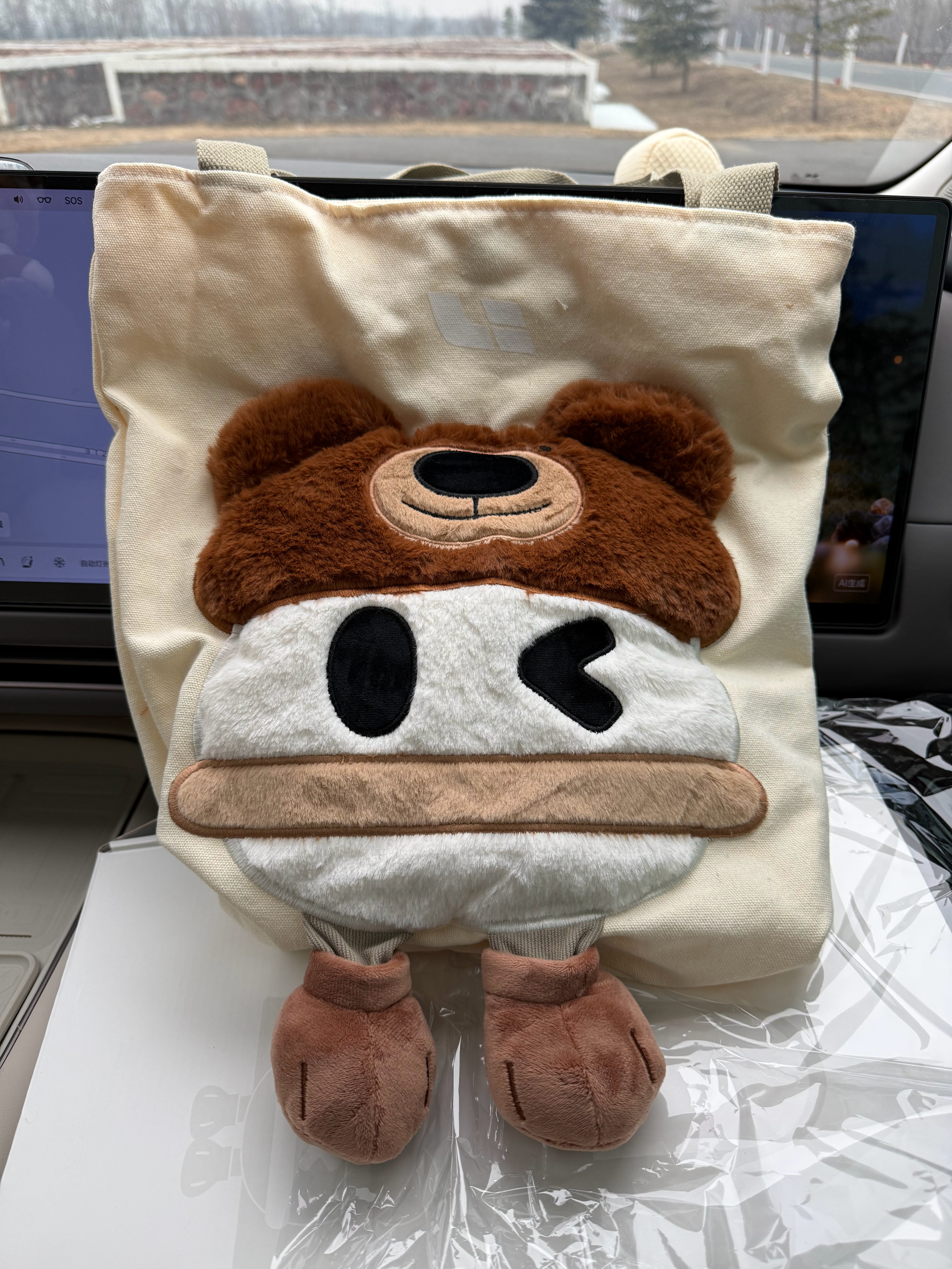 这个帆布包最近好像特别火!大老爷们都要被萌化了!我发现最近理想的周边做的真的是风生水起!还有理想同学x蜜雪冰城的理好甜!理想汽车