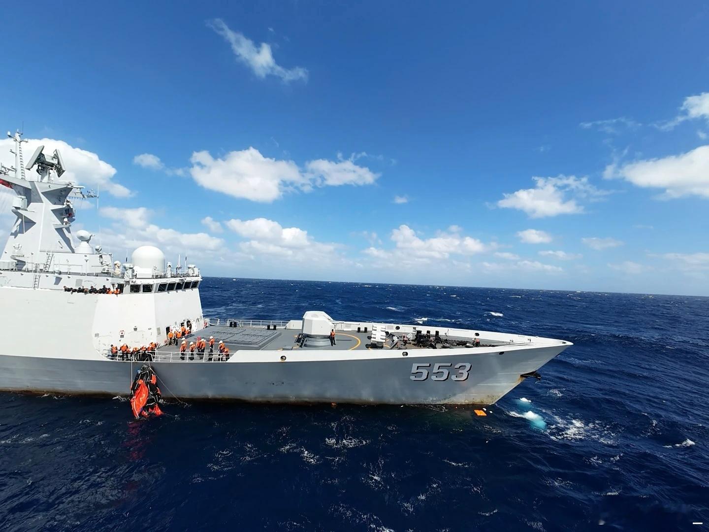 553大理舰参与救援倾斜失联外籍货船的落水船员