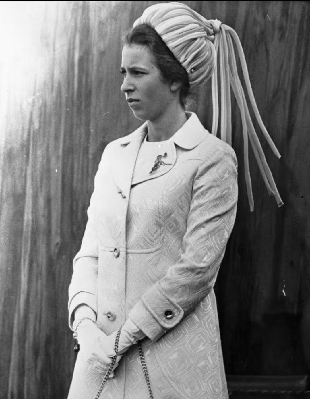 老照片 分享英国安妮长公主于1970年分别在访问新西兰和出席阿斯科特皇家赛马会戴过的神奇头饰,头上顶着倒扣的拖把头(不是),看彩色图就更像了。