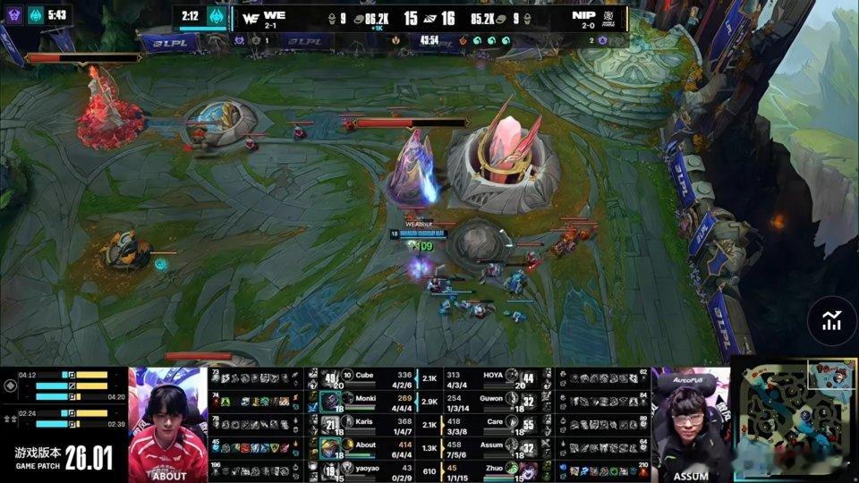 NIP对战WE WE和NIP真男人大战,一波团从蓝方高地打到红色方二塔都不死人最终蒙多肉到谁都杀不掉,WE完成翻盘。2026lpl第一赛段英雄联盟