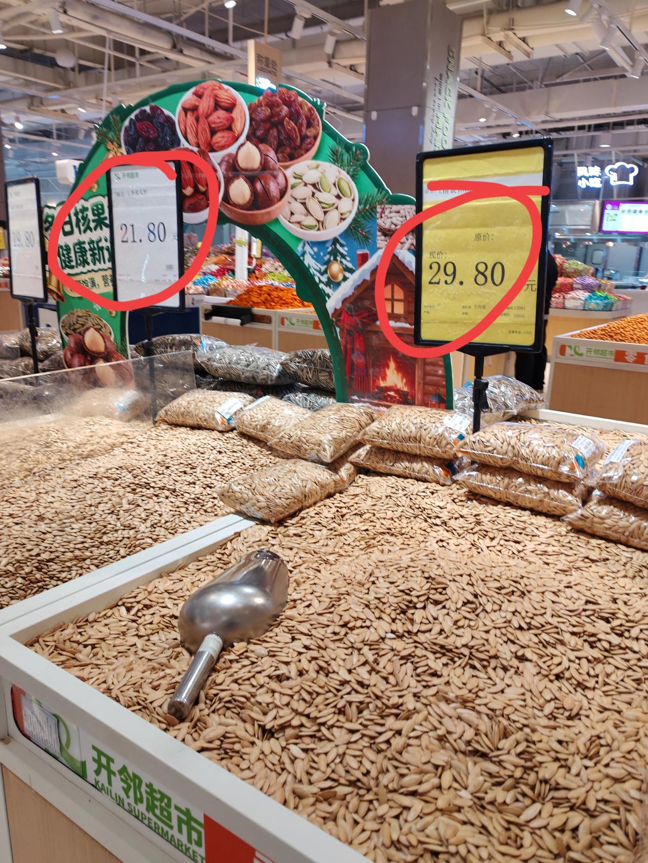 干果比肉贵得多 月薪1万+的白领们,你们下得了手吗? 1月25日,这是我在西安的一超市拍摄到的干果情况,这价格我的钱袋子有些吃不消,给你们看看这价格,有图有真相: 金鸽瓜子19.8元1斤,开心果68元1斤,牙签瓜子29.8元一斤,西瓜子19.8元1斤,开口松子79.8元1斤,夏威夷果28.8元1斤,碧根果45.8元1斤,巴旦木38.8元1斤,南瓜子29.8元1斤,最便宜的是炒花生26.8元1斤。 一看把我惊到了,超市也卖的太贵了,1斤猪肉十元钱,而如今买1斤干果能买几斤猪肉了,这就是个消遣的小零嘴,为啥要卖这么贵? 反正我认为性价比太低了,也不是买不起,是觉得真心不划算,在商场里买这些干果就像被宰的冤大头,算了,我还是网购或者集市扫 荡吧。 朋友们,你们会购买这些金贵的干果吗?