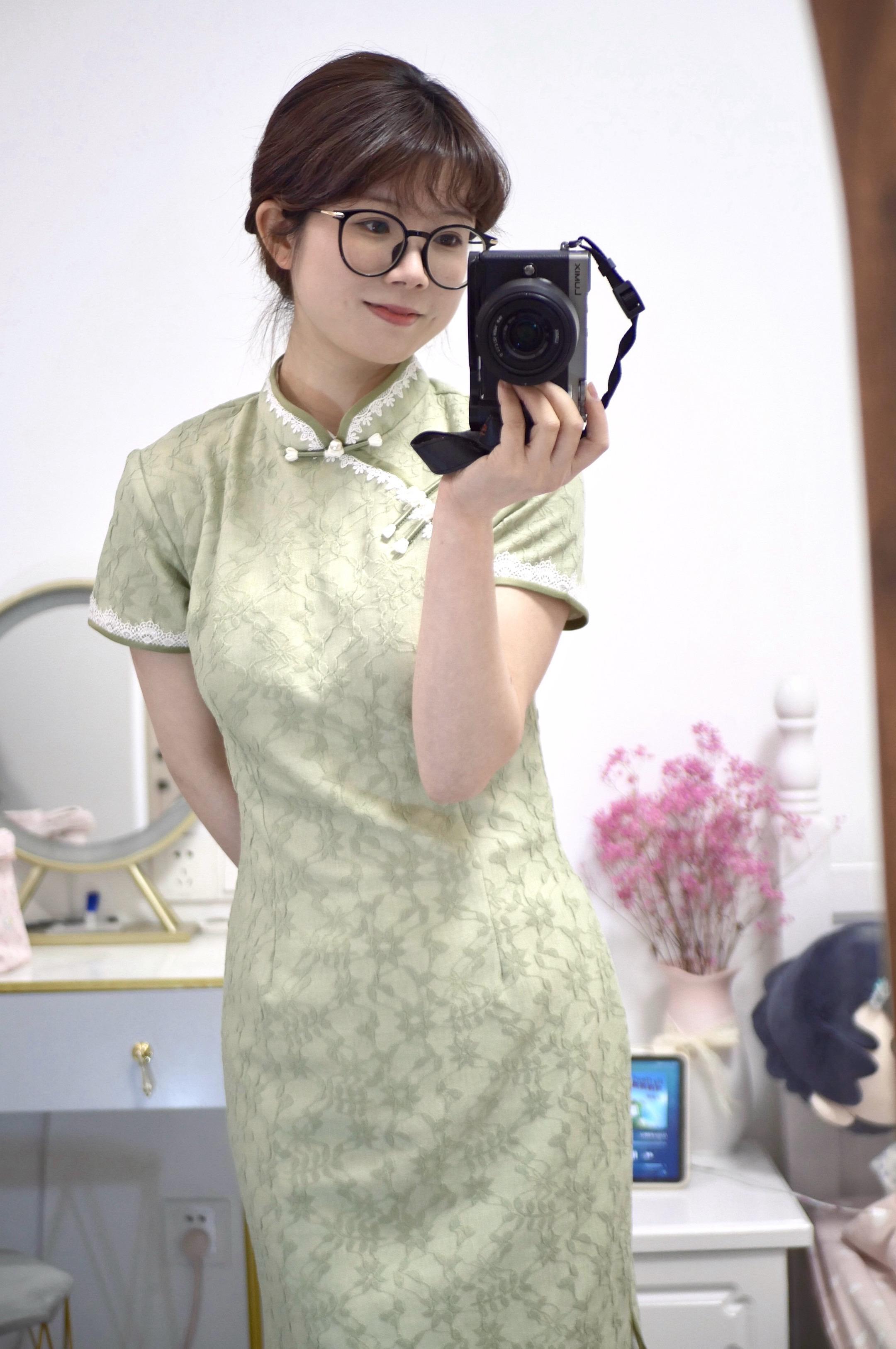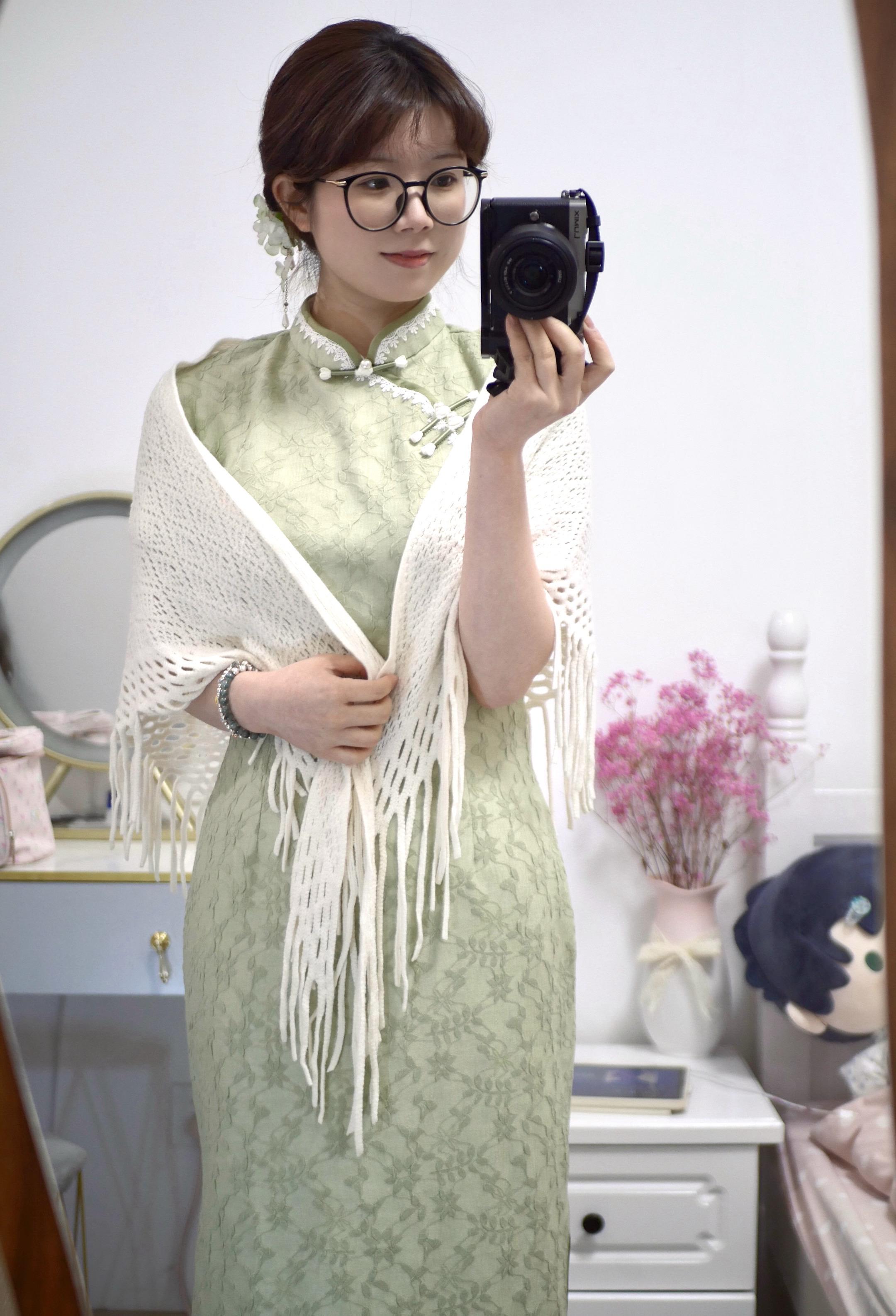 穿上花旗袍。认不出图案到底是啥◔.̮◔ 旗袍:苏城日记