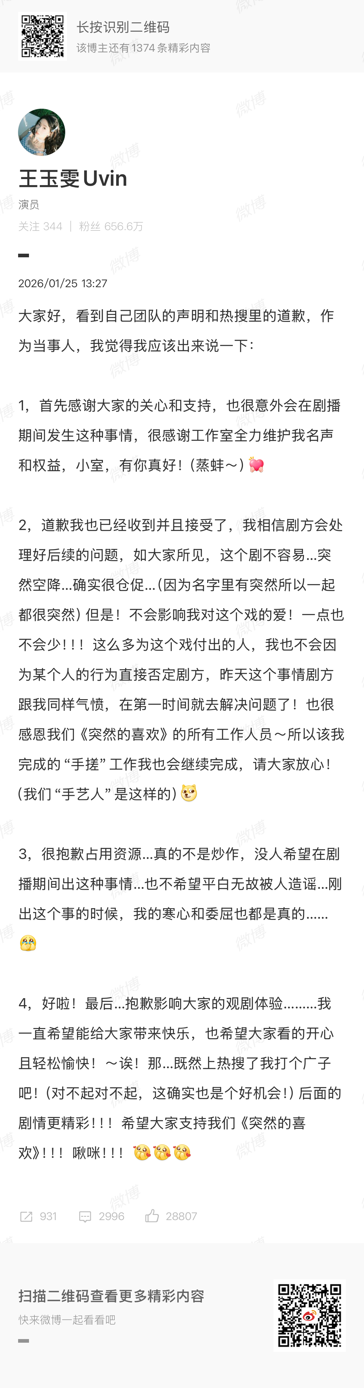 这个周末有点忙彭小苒道歉、王玉雯道歉。