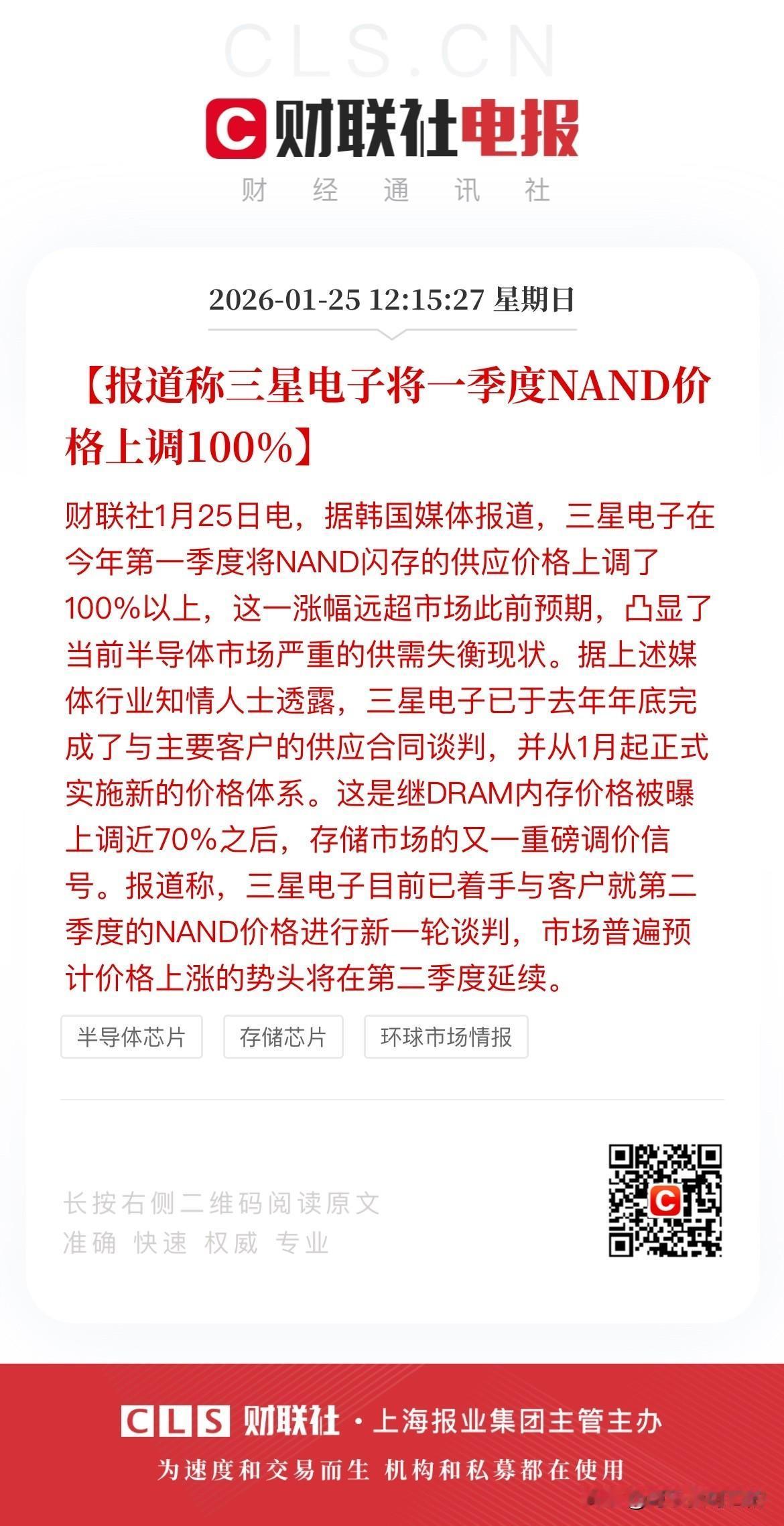 闪存一次性涨价100%!内存市场这是要将涨价进行到底啊! 最新消息,三星电子在今年一季度将NAND闪存的供应价格上调了100%以上,而且三星电子正在与客户就第二季度的NAND价格进行谈判,市场普遍预期涨价会延续到二季度! 想过闪存会涨价,但是没想到三星会这么狠,居然一下子直接翻了一倍,而且未来还要继续涨。 如果这么搞下去电子产品肯定还要涨价,但是问题是现在啥都在涨价,但是唯独工资没涨,这就有点尴尬了!