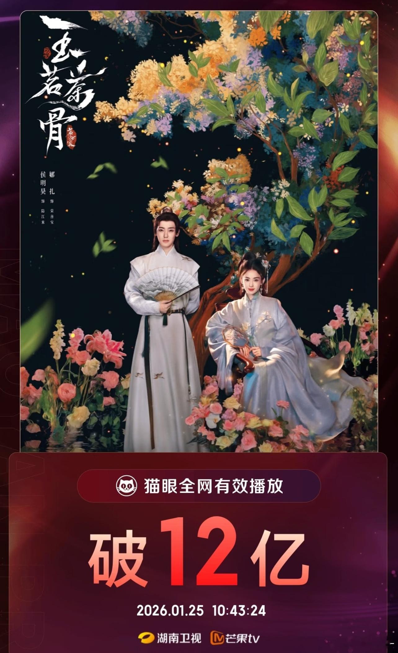 刚才翻了一下骄阳似我,逍遥这些结束的更早的有效播放量才10亿呢,玉茗茶骨就这么自然发酵到12亿啦!