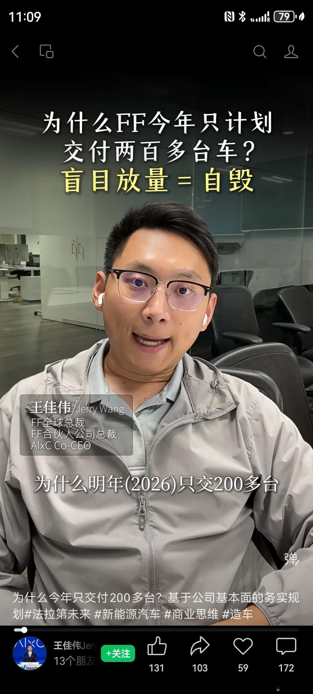 太逆天了,“200多辆”和“盲目放量”是什么能联系到一起的。我还以为这是条恶搞视频,仔细看完,人家是正儿八经的,甚至没憋笑,我觉得他是认真的。这段话说出来还要忍住不笑是很难的,我办不到。