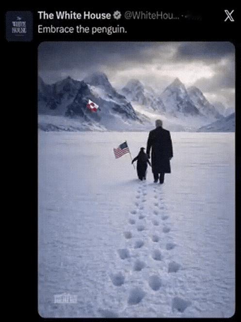 白宫AI图闹大乌龙!企鹅闯北极被北极熊“救场”,这波跨极互怼笑不活了 美国白宫一张AI图把全球网友整乐了!特朗普陪着举美国国旗的企鹅逛格陵兰岛,这操作简直是地理常识盲盒大翻车——企鹅是南极“土著”,格陵兰岛在北极圈,俩者八竿子打不着,堪比让熊猫去撒哈拉散步! 格陵兰岛民众反击堪称神来之笔,直接拍了段硬核视频:三只北极熊霸气登场,一把扑倒“拉扯”企鹅的特朗普,叼着小企鹅往南极方向跑,结尾还对着镜头“咆哮”,妥妥的“北极地盘我来守”气场。视频24小时播放量破亿,网友笑称这是“动物界的主场保卫战”。 这只无辜企鹅直接逆袭成“跨极顶流”,表情包刷爆全网,被网友赐名“背锅侠”。商家趁机推出周边,科普博主忙着讲解“南北极动物为啥不能同框”,连格陵兰岛旅游都借势涨粉,一波乌龙带火一串连锁反应。 白宫AI图粗糙到离谱,国旗比例失真、边缘模糊,犯的错小学生都能看穿。一场常识性闹剧变成全民狂欢,你觉得这是白宫无心之失,还是故意博眼球?评论区聊聊~