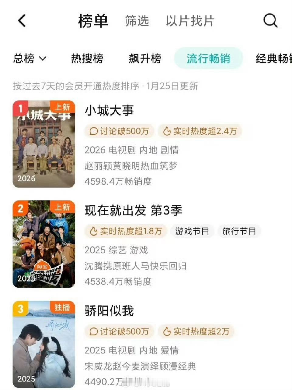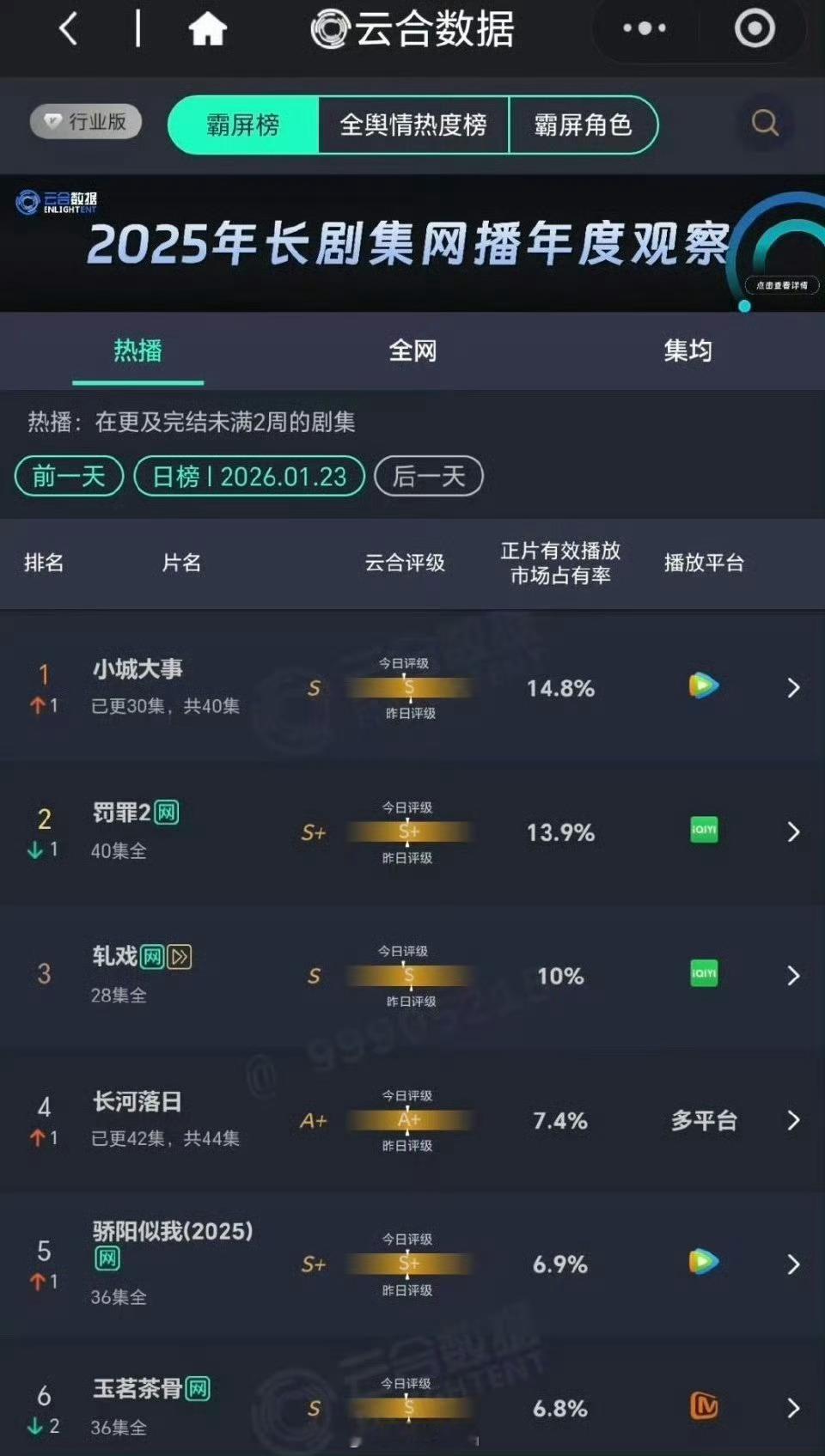 《小城大事》云合占比14.8%继续第一,畅销登顶第一赵丽颖粉丝今日投放云包场80