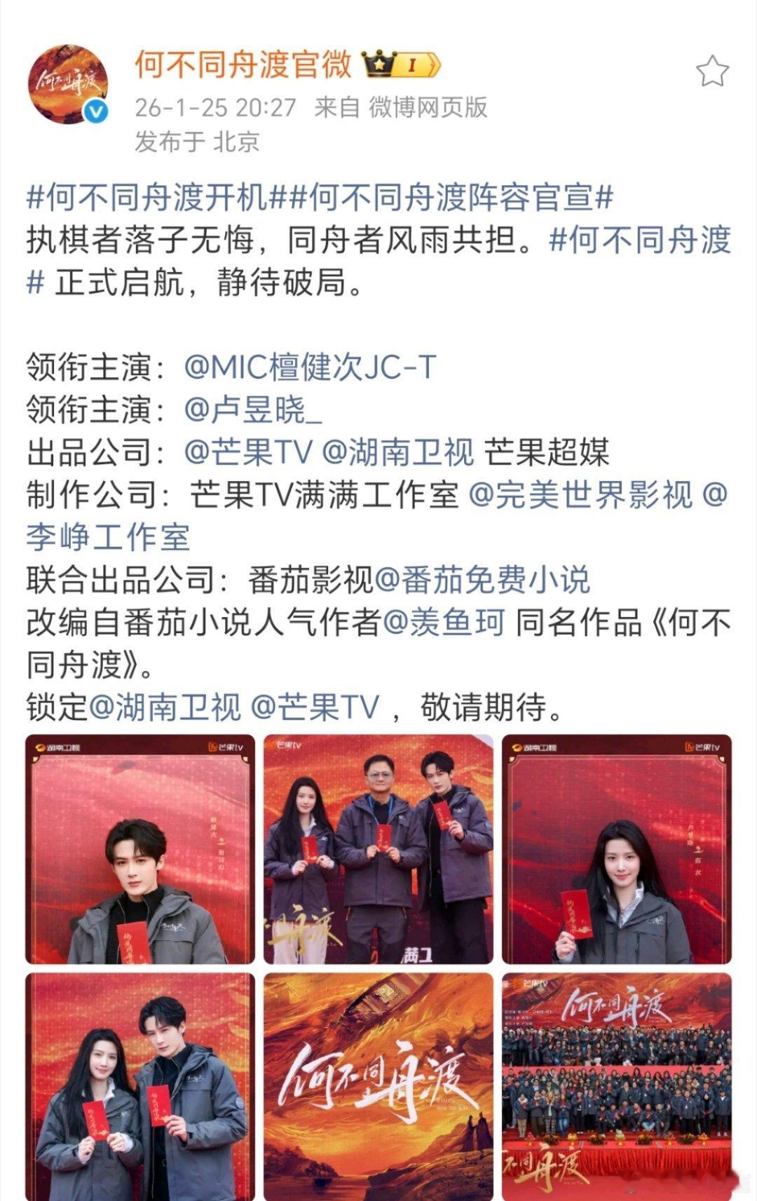 檀健次,卢昱晓《何不同舟渡》开机合影