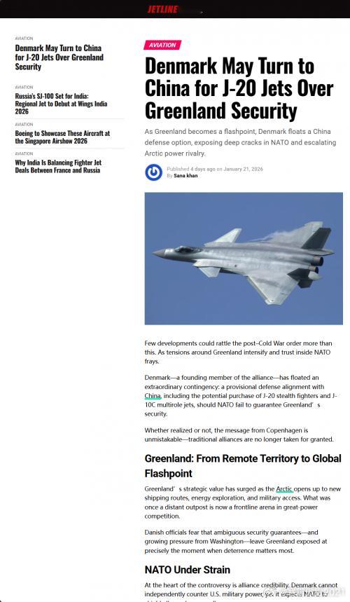日耳曼赢学 丹麦欲购买J20部署格陵兰?➡️目前J20没有外贸型存在德国小黄人发现了丹麦人的口嗨。➡️根据FCAS目前的僵尸状态,建议小黄人向德国空军安利购买J35AE,不受FCAS的达索鸟气。