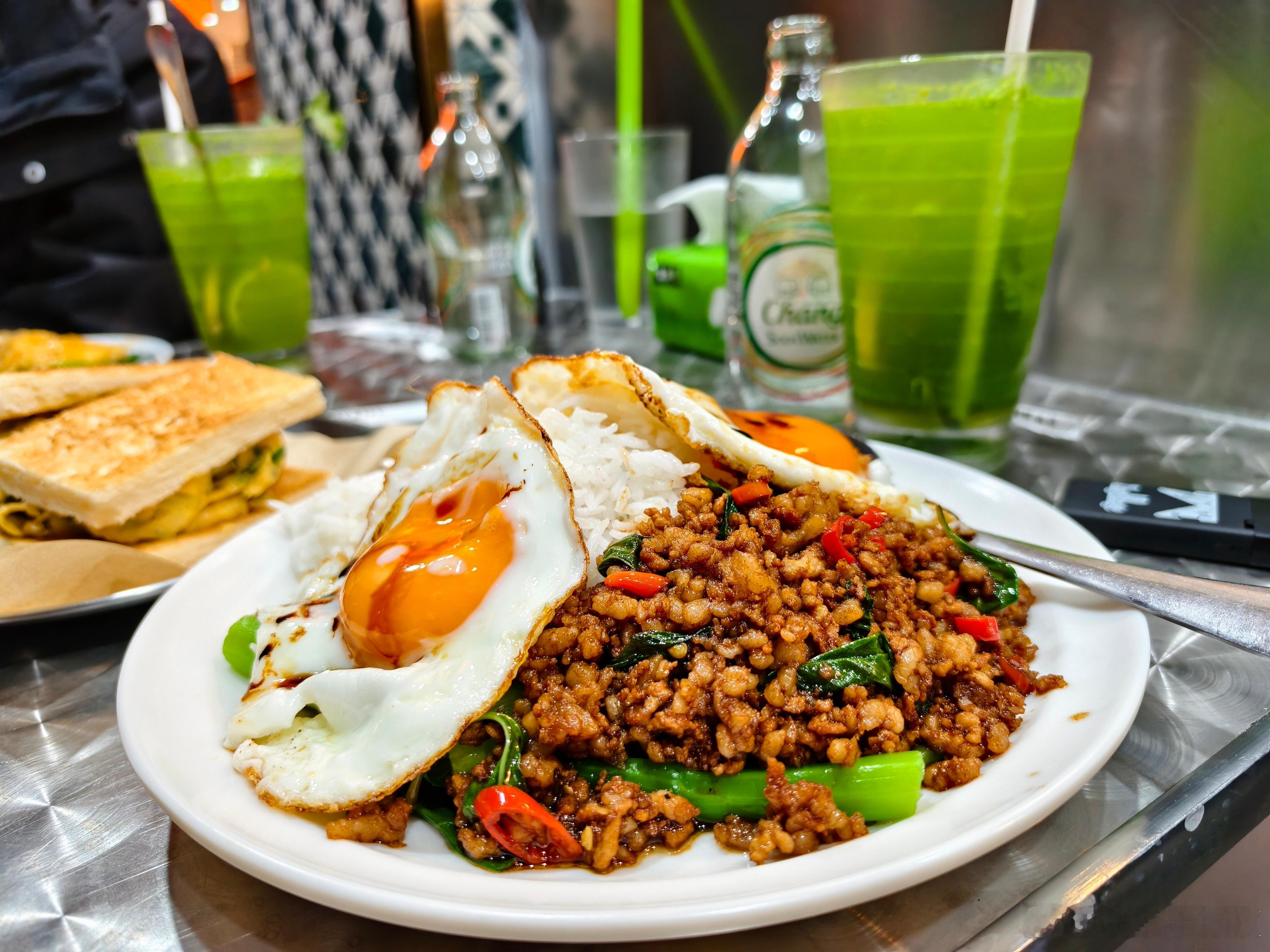 华欢扩充了店面,搬到旁边30米外的铺位空间明显比原本更大,多了户外位置吃饭香菜苏打水回归,口味照旧同时有新品,香菜葱花炒蛋多士口感......有点抽象,挺草原的...反正新店面我很喜欢,继续打卡一辆型格mix茶餐厅指南