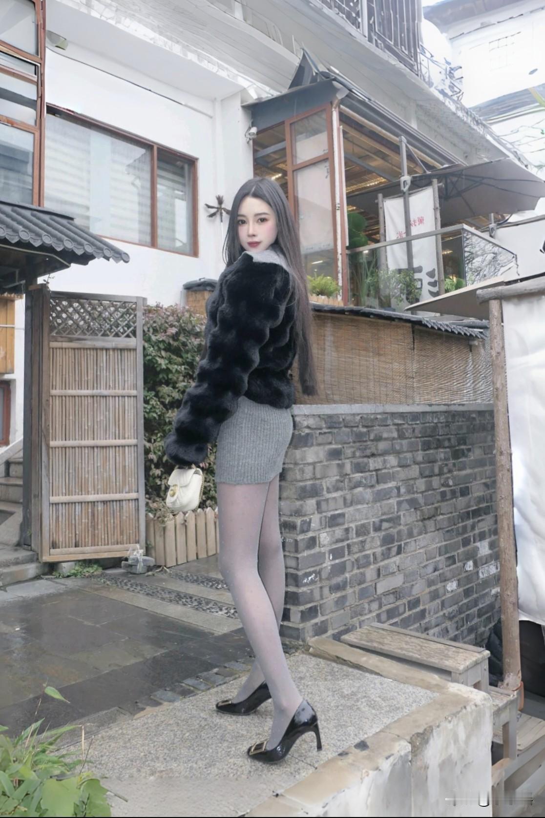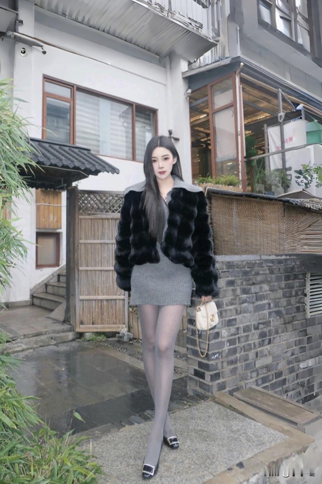 分享秋冬穿搭 貂绒皮草➕包臀裙配厚灰,这气质没谁了。