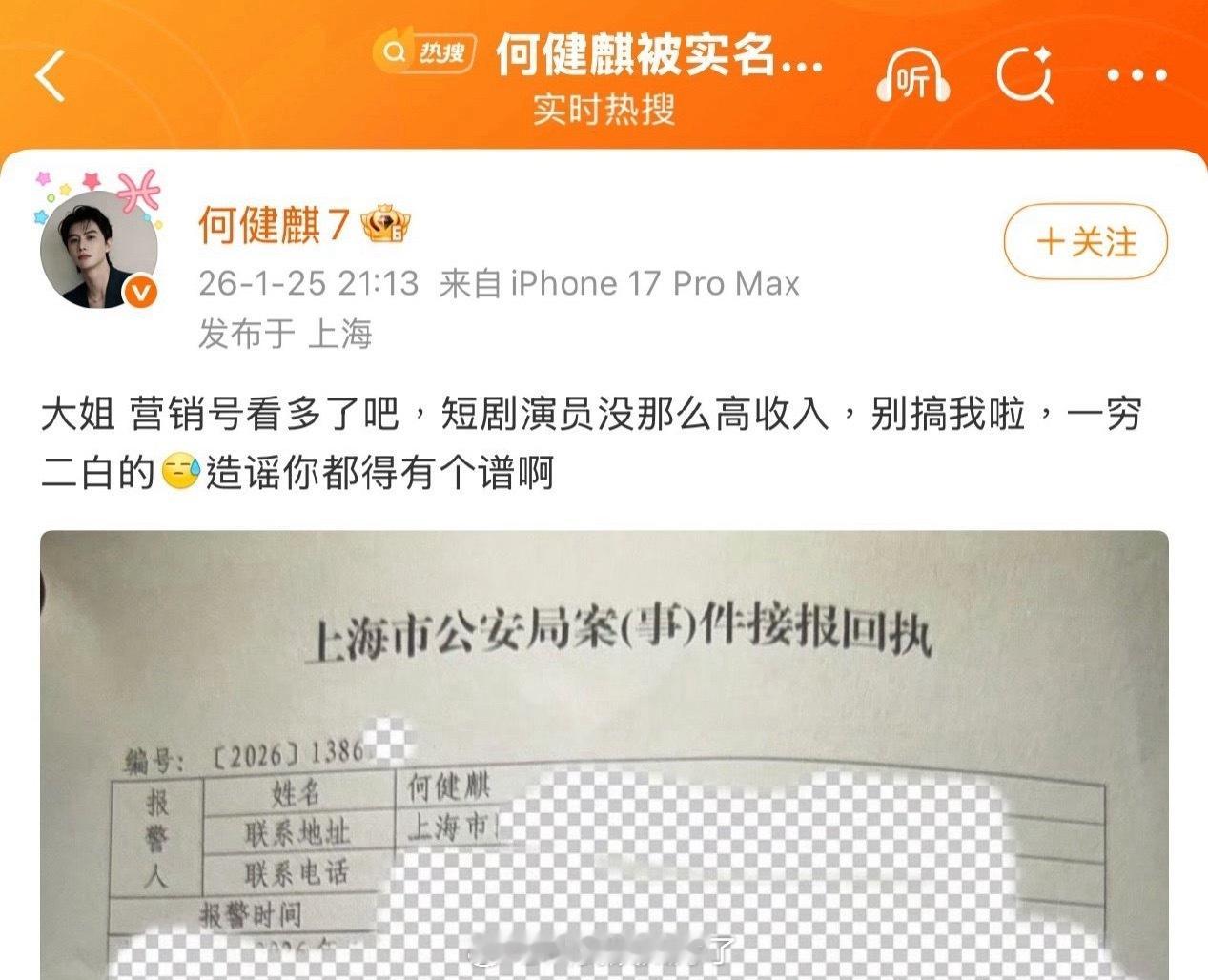 何健麒发文说短剧演员收入没那么高,一穷二白的。造谣你都得有个谱啊。何健麒 造谣你都得有个谱啊