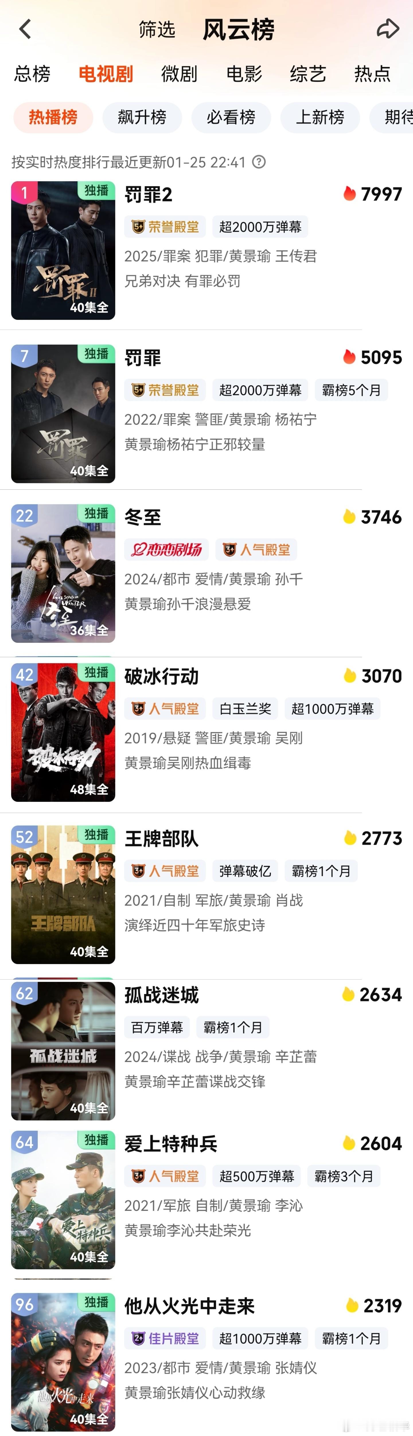 罚罪2黄景瑜罚罪2黄景瑜秦枫 继续保持领先,黄景瑜继续保持爱奇艺8剧在热榜,优酷《雪迷宫》也在热播榜。《孤战迷城》都到了62了,所以说你合作黄景瑜这种认真的演员,你真的要拿出100%的努力,《孤战迷城》这么好的男女主搭配,真是给谢泽浪费了,拿了倚天剑屠龙刀,你不去逐鹿中原,你玩劈柴呢,希望以后的导演引以为戒。