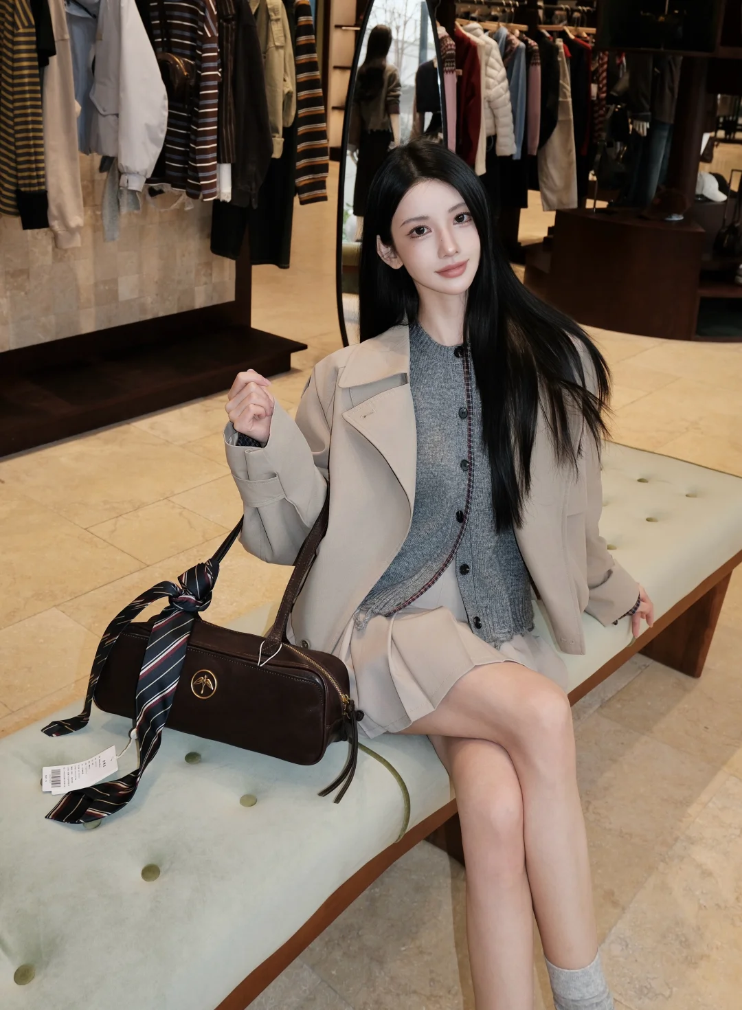 高圆圆这松弛感穿搭,我直接抄作业✅白毛衣配腋下包随性又温柔,皮夹克搭百褶裙