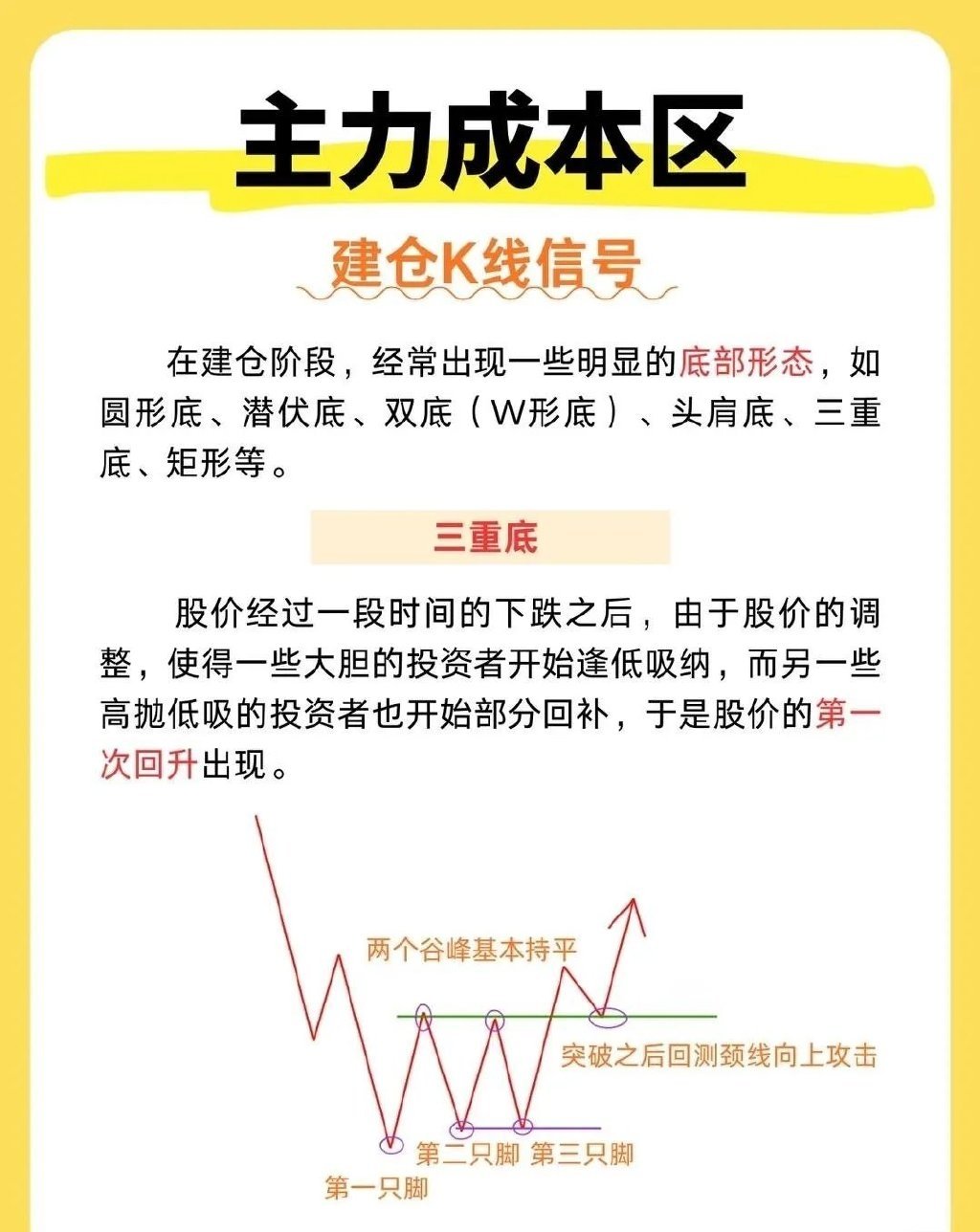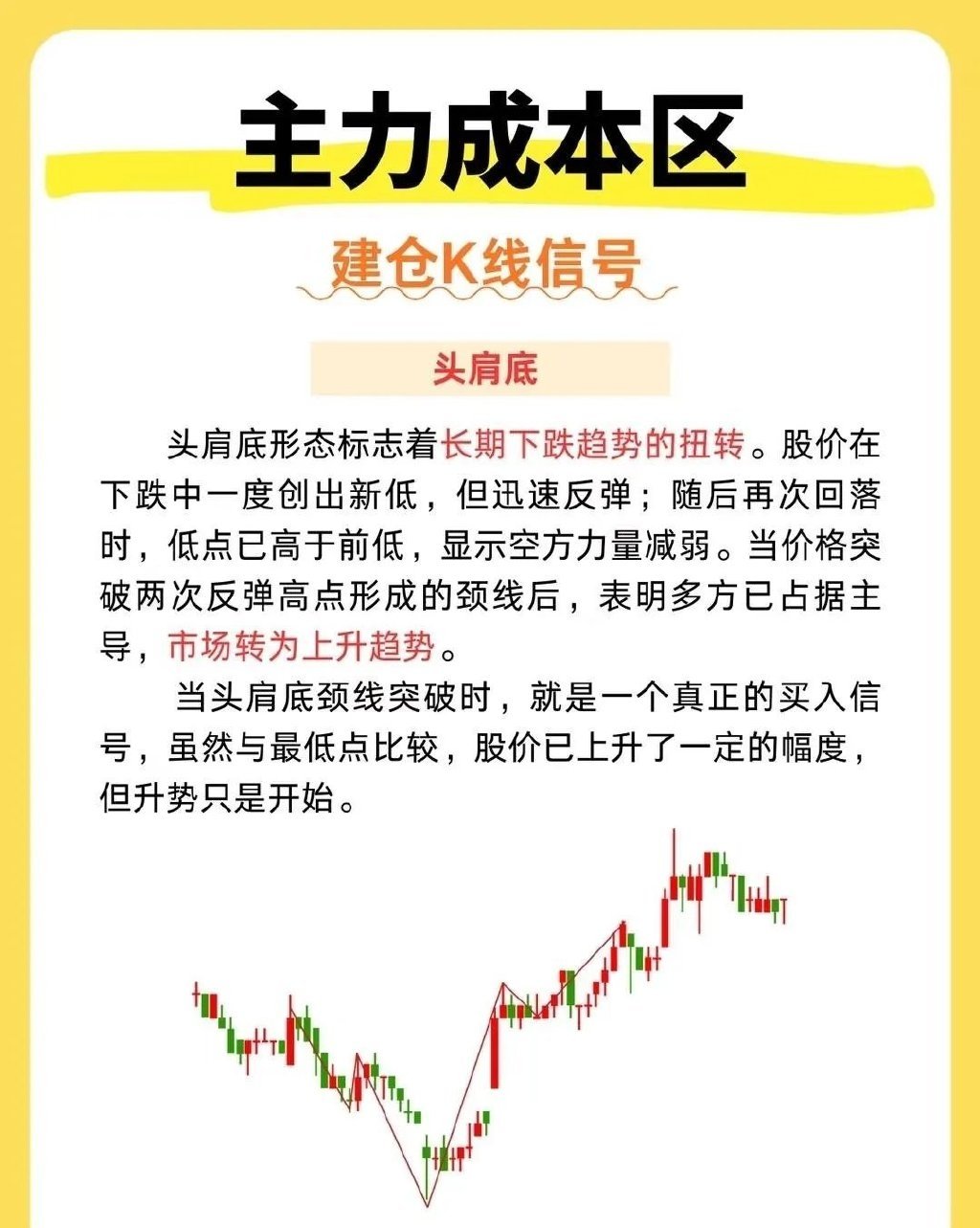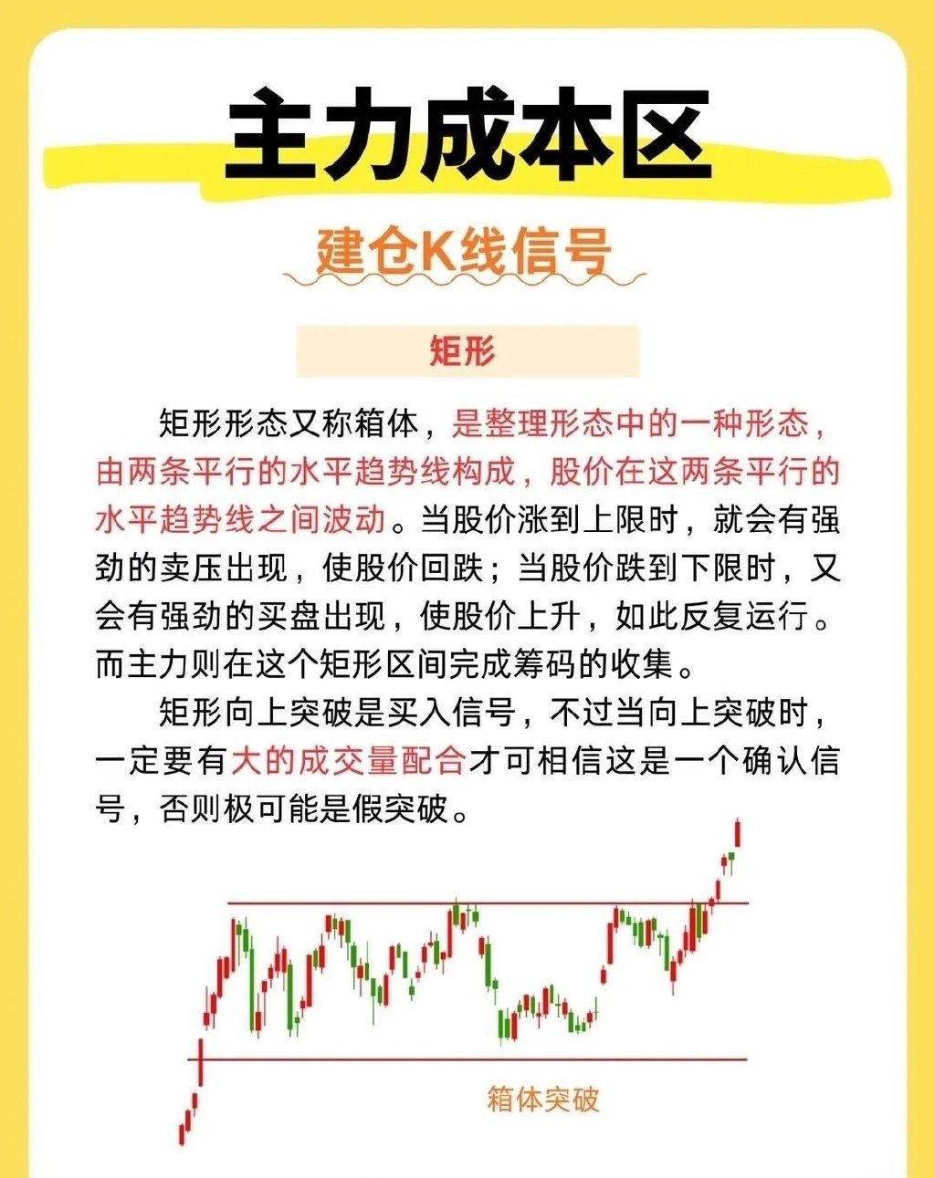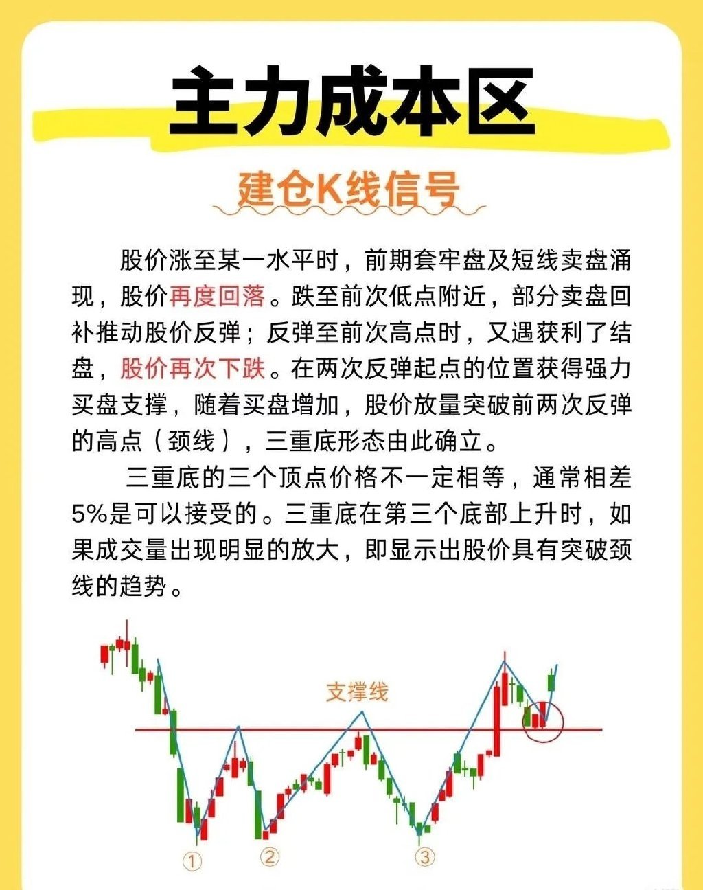 主力成本区建仓的K线形态很有门道。常见的有箱体震荡形态,股价在一个相对固定的区间内波动,主力在这个箱体里悄悄吸筹,就像在箱子里囤货。比如某股票在30 - 35元之间反复震荡几个月,主力不断收集筹码。还有底部横盘形态,K线长时间呈水平状,成交量极度萎缩,主力耐心潜伏。像一些冷门股,在底部横盘一两年,突然某天放量突破,那可能就是主力吸够筹码准备拉升了。另外,红三兵形态也值得关注,三根小阳线依次排列,显示主力逐步建仓推动股价上升。把握这些形态,有助于我们跟上主力步伐。