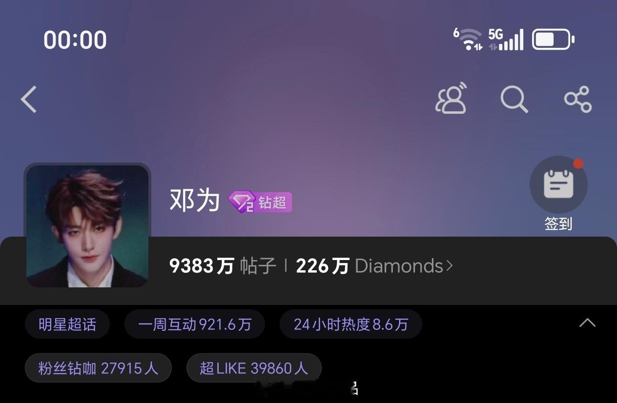 邓为超话昨日发帖4.3万+,超like3.9万+邓为的人气夯爆了,钻石们的战斗力