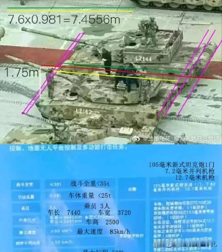 35吨100式碾压69吨明明白白的... 100式全长9.4m、车高2.5m,战斗全重仅35吨(裸车25吨),3名乘员躲在装甲盒乘员舱,配无人炮塔。 机动性拉满,最大速度85km/h、行程500公里,运-20能一次运两辆,战略投送能力超强。 火力更是硬核:105mm新式主炮初速1706米/秒,2000米穿深超720毫米,比三代125mm炮还猛,还搭配遥控武器站,能反无人机、拦导弹。 防护也不含糊,车体正面防穿甲超700毫米,加爆反后可达800-900毫米,堪比52吨级坦克的防护水平。 对比M1A2(66-68吨)、豹2A8(约69.5吨),100式轻了一半还多,关键性能却不落下风,妥妥的“轻量化王者”。