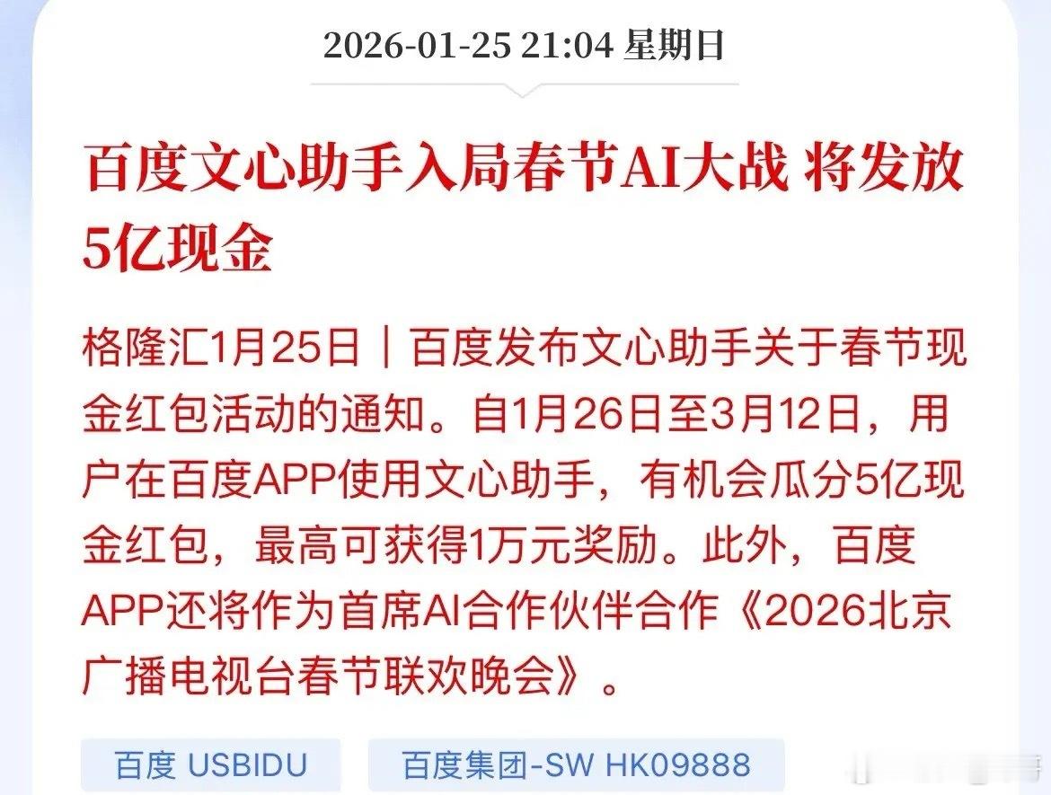 AI应用点火了,百度文心助手入局春节AI大战。毕竟阿里云通义大模型已经是春晚AI大模型的核心了,也标志着国产通用大模型在顶级直播场景的大规模商业化落地标志AI应用正式从去年的概念到今年AI应用元年的正式转换,去年的春晚机器人带动了机器人春季的一波大行情,那么今年的AI应用是不是也真如市场预期的那么火热。