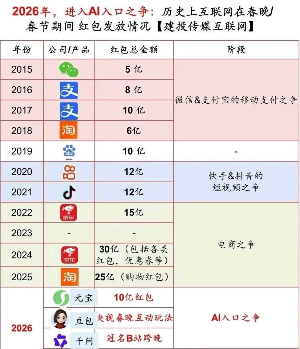 今年的春晚红包,腾讯才是大金主呀?以前,腾讯是花小钱办大事,现在是花大钱办小事,其它几个月活都差豆包太多了,感觉Ai竞赛第一回合,豆包赢的太轻松了。
