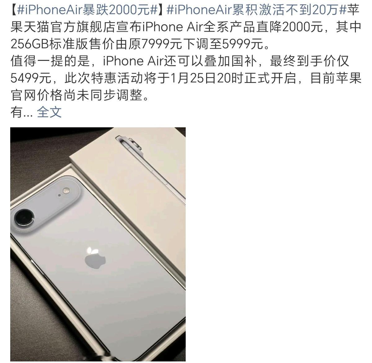 iPhoneAir暴跌2000元可想而知iphoneAir的成本到底是多少了🤔现在你会入手果子还是耀子的惊叹小薄机呢耀子国补后4499-5499(1T)果子5499(256G)