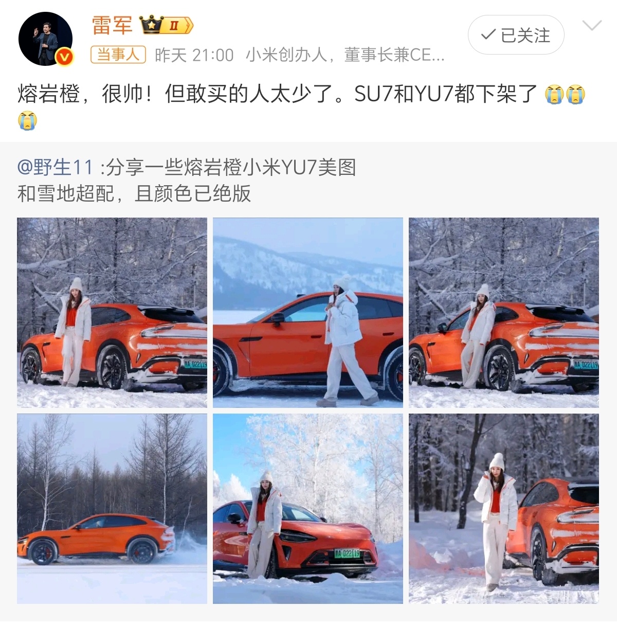 雷军称小米汽车熔岩橙配色敢买的人太少只能搞搞定制款配色大部分人都会选择“低调色”其实这种颜色不仅仅是亮眼 炸场 也是很耐看的你买车会选这种颜色吗