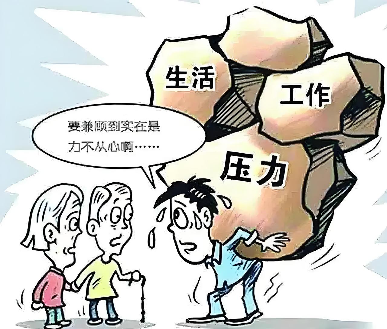一、家庭责任(核心重负) 赡养父母:医疗、护理、养老开支攀升,突发疾病与异地照护消耗时间精力。 子女抚育:教育投入(补习、择校、留学)与青春期沟通压力,亲子关系易紧张。 婚姻经营:长期压力致沟通减少、亲密感下降,婚姻进入平淡或危机期。 二、职场与经济(生存焦虑) 职业瓶颈:晋升通道收窄、35+年龄歧视、技能折旧与转型艰难,被年轻群体替代风险高。 经济重压:房贷/车贷、教育医疗等刚性支出叠加,收入增长放缓,抗风险能力弱。 财务安全:担忧失业、收入下滑,自身养老储蓄不足,经济环境波动加剧焦虑。 三、健康与精力(身体预警) 机能衰退:体能下降、慢性病增多、记忆力减退,体检异常与衰老恐惧并存 。 精力透支:职场家庭双重负荷,睡眠不足、运动缺失,易陷入“疲劳-焦虑”循环。 四、自我与社会(价值迷茫) 理想落差:年轻时目标未实现,改变机会减少,产生“人生停滞”感。 社会比较:同辈成就对比(财富、地位、子女发展)引发自卑与焦虑。 角色固化:被“稳定、负责”的社会期待束缚,个人梦想与个性被压抑。 五、时间与关系(隐性消耗) 时间稀缺:多重角色挤压个人时间,兴趣爱好与自我成长空间被压缩。 社交内耗:人情往来成本高,无效社交消耗精力,而深度支持系统薄弱。 核心压力公式 中年压力 = 家庭责任(赡养+育儿+婚姻)+ 职场危机(瓶颈+替代+转型)+ 经济负担(刚性支出+储蓄不足)+ 健康下滑(机能衰退+精力透支)+ 自我价值危机(理想落差+社会比较)