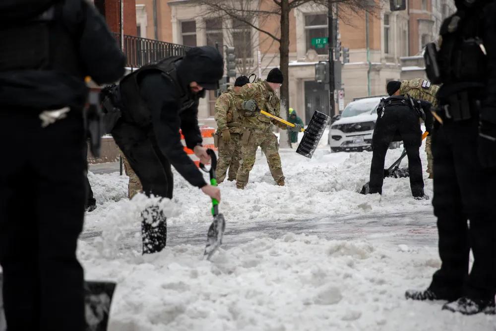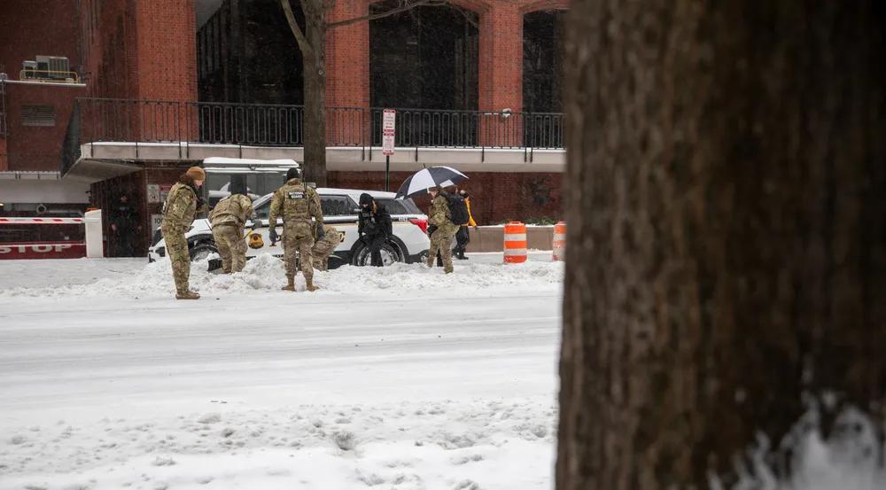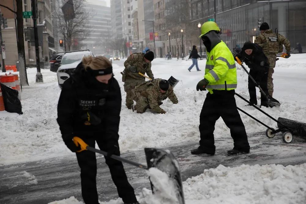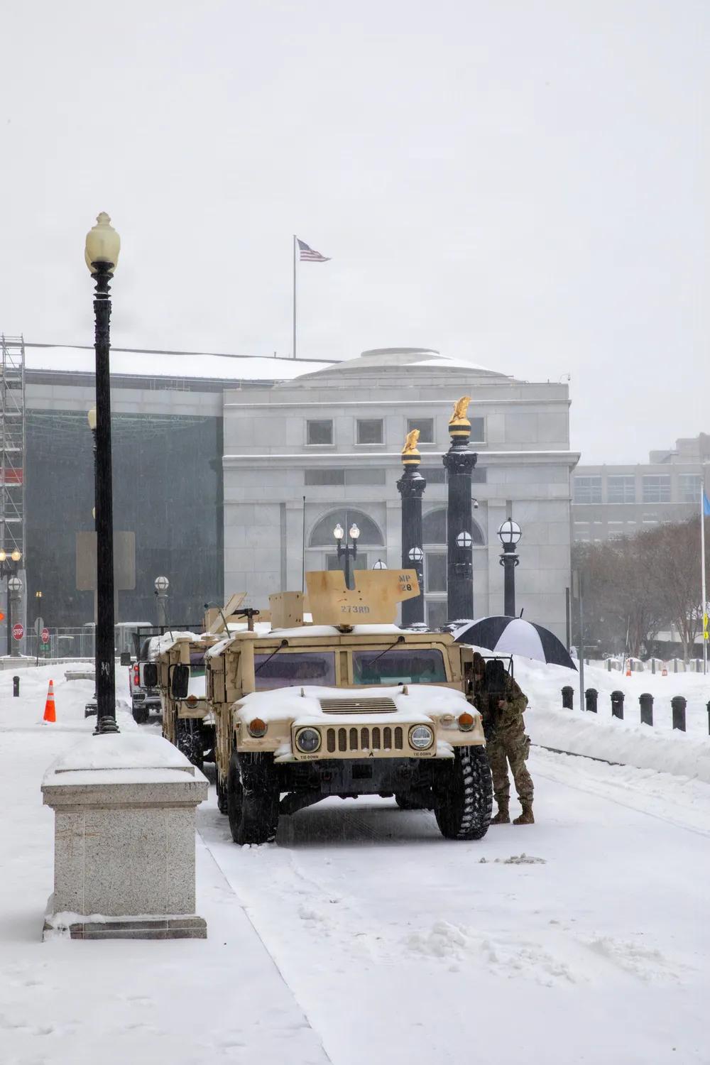 2026年1月25日,美国首都,寒潮和大雪如期而至。积雪和冰冻状况使整个区内的交通条件变得危险,国民警卫队成员在受灾区域提供援助,同时保持可见存在感,确保全国首都的公共安全和社区韧性。