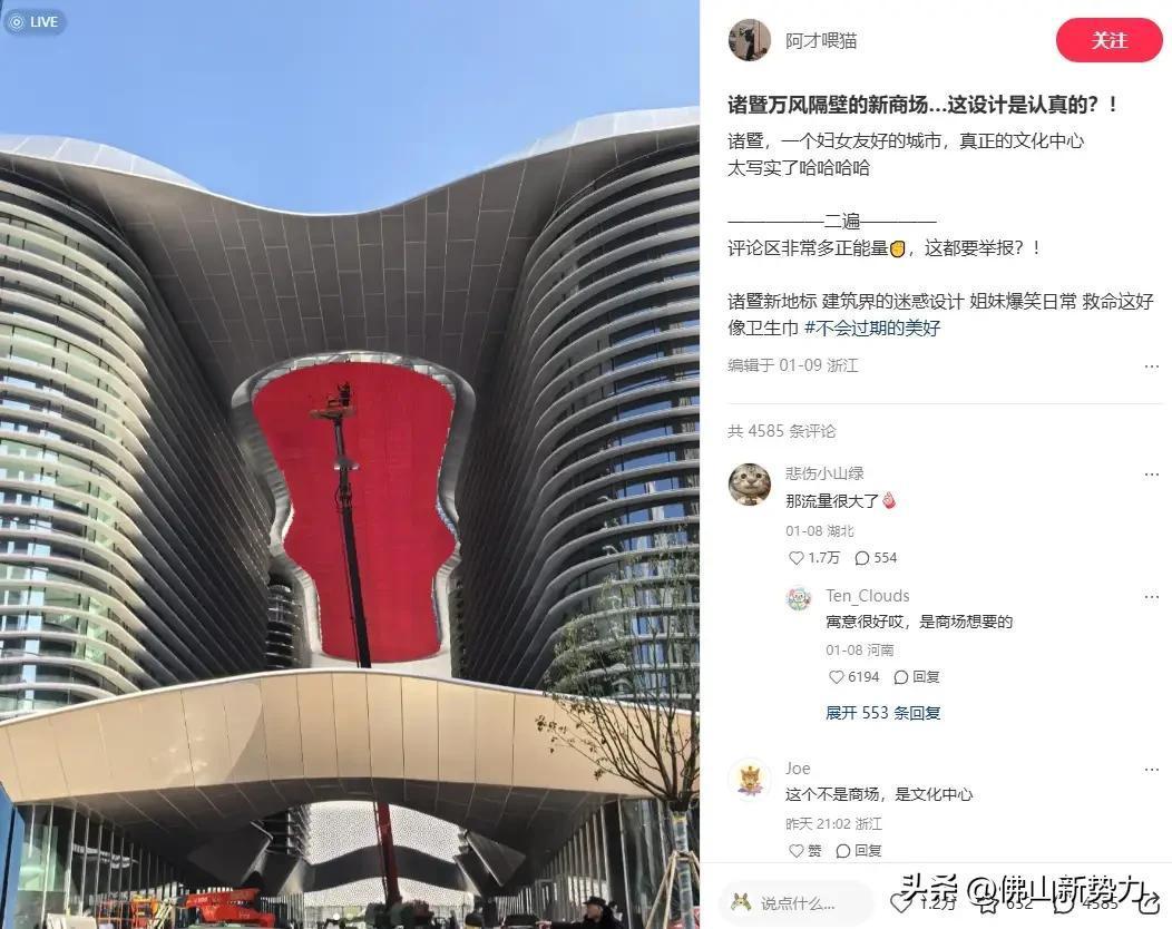 投资11.5亿!浙江诸暨大型地标酷似“姨妈巾”引发热议!网友:设计师气血很足!浙江诸暨那个投资11.5亿的文化产业中心可太有话题度了。从人视角看,它长条形主体配两侧翼楼,中间屏幕调试成红色后,活脱脱像个“姨妈巾”,网友调侃设计师气血很足。不过也有人觉得像小提琴。 这建筑是城东重点文化项目,总用地超3.5万平方米,建筑面积近9.3万平方米。2022年12月开工,原计划2024年12月完工,现在处于幕墙安装等阶段,快投入使用了。鸟瞰图看它还算正常,只是这奇特造型引发的讨论,估计会一直持续。