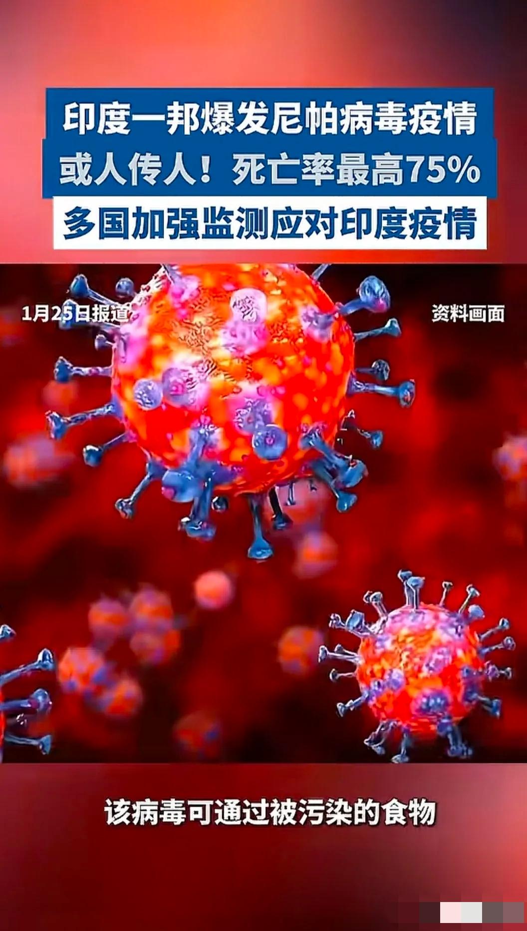 警报已经拉响!印度这次闯了大祸!就在周边邻国还在观望的时候,泰国和尼泊尔已经率先动手,直接对印度游客拉起了“生物警戒线”。这不是歧视,这是保命!面对致死率高达75%的尼帕病毒,谁敢慢半拍,谁就是对自己国民的生命不负责任! 这玩意儿简直就是死神降临!世卫组织早就发了红牌警告。死亡率最高飙到75%,什么概念?四个人感染,三个得死!更绝望的是,现在全世界手里连一瓶特效药、一支疫苗都没有。一旦中招,基本就是拿命在跟阎王爷赌运气。 这次尼帕病毒在印度西孟加拉邦暴发,可不是小打小闹,当地已经有患者病情危重,近百人被居家隔离。更要命的是这病毒的传播性,它本是果蝠携带的人畜共患病,能通过污染的食物、动物体液传给人,一旦到人身上,还能直接人传人,稍不注意就可能造成扩散。 最让人捏把汗的还有它的潜伏期,短则三四天,长的能到45天,还有过潜伏数月甚至数年的情况。这意味着感染者可能看似毫无症状,却在无意间把病毒带向各地,这也是泰国和尼泊尔急着拉警戒线的原因。普吉机场对印度游客层层健康监测,尼泊尔在边境口岸严阵以待,这些操作哪里是小题大做,分明是把国民的生命安全放在第一位。 反观印度,疫情已经找上门,防控却不见太多硬举措,只看着病毒在境内蔓延,丝毫没考虑到周边邻国的安危。要知道,印度和周边多国人员往来密切,旅游、商贸交流从没断过,这种时候不把疫情控住,就是把周边国家都置于危险之中。 尼帕病毒的可怕,经历过疫情的人都深有体会,无药可治无苗可防的情况下,最有效的办法就是提前防范。泰国和尼泊尔的果断,给所有周边国家提了个醒,疫情面前没有侥幸,早出手才能早安心。所谓的“生物警戒线”,从来不是针对某个国家,而是针对病毒的精准防控,是对生命最基本的敬畏。 疫情防控本就该不分国界,可印度的不作为,却让邻国不得不筑起防线。你怎么看泰国尼泊尔的硬核防控?评论区聊聊,面对致命病毒,这样的保命操作该不该有?