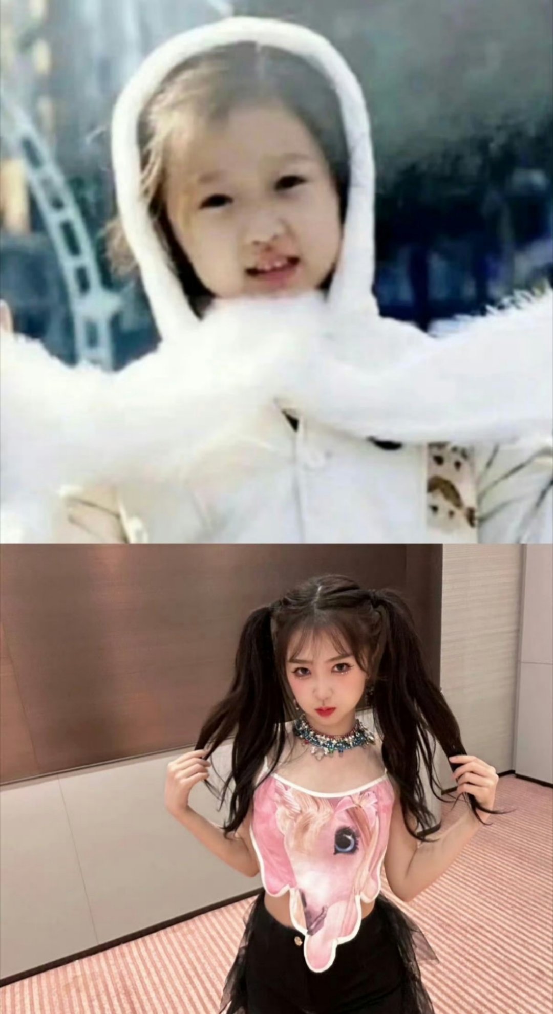 虞书欣在上班路上碰到小时候的自己,你们两个之中有两个很萌!