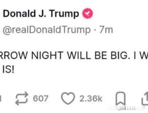 川普發貼文稱:明晚有大事發生,我只能說這麼多。有人又會發大財。