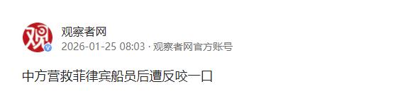 中方营救菲律宾船员后遭反咬一口 1月24日,菲律宾海岸警卫队发言人之一杰伊·塔列拉转发《中国日报》有关中方营救在中国黄岩岛附近海域倾覆外籍货轮落水船员的报道视频。 可杰伊·塔列拉却一边感谢中国海警迅速,领着重生的恩情,一边往中方身上泼脏水。 先把事儿的来龙去脉捋清楚,1月23日凌晨1点34分,中国海警接到了海南省三沙市海上搜救中心的通报。一艘外籍货轮在中国黄岩岛西北55海里处倾覆,船上21名船员全是菲律宾籍。 中国海警没有丝毫迟疑,立即派遣东沙舰、三门舰两艘海警舰全速赶赴失事海域。南部战区也快速响应,调度军机在失事海域上空持续搜索。当时事发海域能见度极差,风力达到7到8级,涌浪最高有4米,舰艇摇晃得厉害,搜救难度极大。 救援人员抵达现场后,迅速划定搜救区域,用雷达扫描、探照灯全域照射、高频呼喊联络等多种方式排查。次日凌晨4点20分左右,救援人员发现了多名漂浮的船员,立刻精准抛投牵引绳,把落水船员逐一转移到海警执法舰艇上。 船员登舰后,海警医护人员第一时间开展救助。给他们保暖、补水,做心理疏导,对呛水、擦伤、脱水的船员,进行呼吸道清理、伤口消毒包扎和生命体征监测。身体虚弱的船员,有专人全程陪护观察。海警执法员还专门划设了休整区,给他们准备了温热的粥品和饮用水。 截至1月23日12点30分,中方已经救起17名菲律宾籍船员。其中14人生命体征稳定,2人不幸遇难,1人正在抢救。到了1月24日,中国海警还在联合赶到现场的菲海警9701号船,分区搜救剩下的4名失踪船员。 菲方船员赖安巴拉达斯获救后,明确表达了感谢。他说自己感到很开心,非常感谢中国海警的救助。这本该是一场人道主义救援的暖心案例,却被杰伊·塔列拉的一番话搅得变了味。 杰伊·塔列拉口口声声说感谢中方的迅速专业,转头就污蔑中方在海上采取“恐吓”“骚扰”“阻碍”菲方船只的行动。这种说法完全没有任何事实依据。中国海警在南海的所有执法行动,都是在自己的领土主权和管辖海域内开展的,目的是维护国家主权和海洋权益,以及海域的安全稳定。 菲方所谓的“阻碍”,本质上是中方对其非法侵权行为的正当制止。近年来,菲律宾多次派船只非法闯入中国黄岩岛、仁爱礁等海域,甚至故意带媒体人员随行,拍摄片面画面炒作“中方以大欺小”。实际情况是,菲方船只经常违规拦截、危险驾驶,甚至采取冲撞措施,反而倒打一耙指责中方。 更值得警惕的是,杰伊·塔列拉声称希望中方承认事发区域是“菲律宾的专属经济区”。这套说辞纯属无稽之谈,完全站不住脚。黄岩岛是中国的固有领土,中国对其拥有无可争辩的主权,这有充分的法理和历史依据。 中国元朝就已经发现并命名了黄岩岛。1935年、1947年、1983年,中国政府多次通过官方文件和地图,明确将黄岩岛列入中国版图,纳入中沙群岛范围。中国历代渔民都在黄岩岛海域开展渔业生产,中国政府也多次派科学考察队登岛考察,这些都是中国行使主权的铁证。 菲律宾的领土范围,是由1898年《美西巴黎条约》、1900年《美西华盛顿条约》和1930年《英美条约》明确界定的,西限以东经118度为界,黄岩岛远在这个界限之外。1990年,菲驻德国大使还曾明确表示,黄岩岛不在菲领土主权范围以内。 国际法有个基本原则,叫做“陆地统治海洋”。《联合国海洋法公约》允许沿海国建立200海里专属经济区,但前提是不能损害他国的固有领土主权。菲方想用专属经济区的主张,否定中国对黄岩岛的领土主权,这是本末倒置,完全违反国际法。 这种“感谢+反咬”的操作,菲方不是第一次做。此前中国海军曾救助过一名受困三日的菲律宾渔民,还协调菲海警船让其安全返航。结果杰伊·塔列拉同样污蔑中方此举是“政治宣传”,直到中国驻菲大使馆公布了两船电台沟通的录音铁证,才戳穿了他的谎言,引发菲网民对本国政府的质疑。 菲方之所以反复上演这种戏码,背后离不开美国的推波助澜。美国有“南海战略计划”“妙手计划”,菲律宾则有“进攻性透明战略”,双方勾结起来,通过西方媒体大肆炒作片面叙事。数据显示,2024年上半年西方发布的相关内容中,超过70%的报道和近90%的社交媒体贴文都对中国持负面态度,根本不是客观报道,而是刻意抹黑。 中国在南海始终秉持人道主义精神,多次救助包括菲律宾在内的外籍遇险人员。中方的救援行动,是出于对生命的尊重,是负责任大国的体现,从来不是什么“政治宣传”。 菲方应该清楚,感恩是做人的基本底线,尊重他国主权是国与国交往的前提。靠抹黑中国、炒作领土争议转嫁国内矛盾,或者依附外部势力挑事,最终只会损害自身利益。南海的和平稳定,需要双方共同维护,而不是单方面的挑衅和反咬。