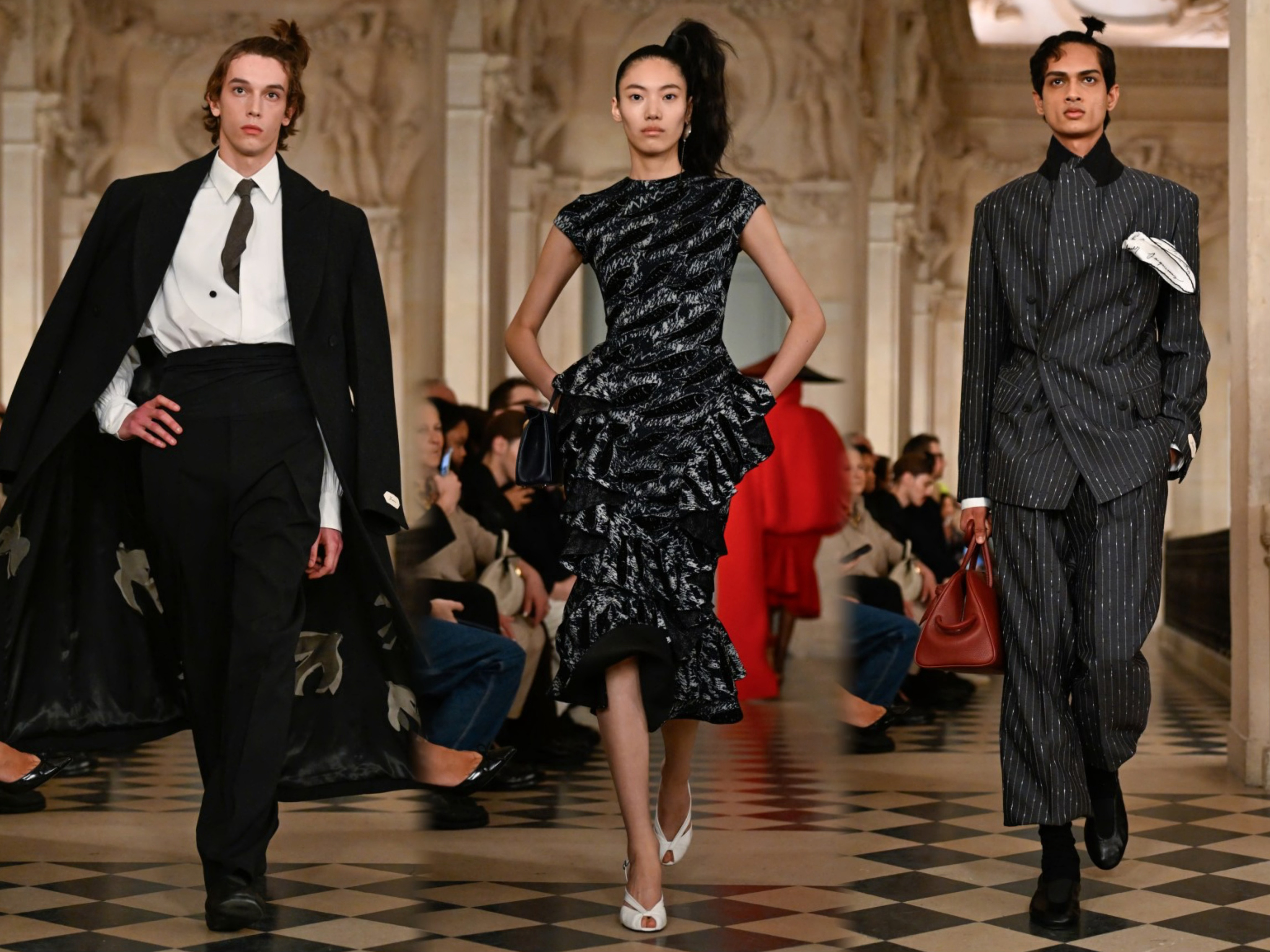 Jacquemus F/W 2026 巴黎男装周 把秀场搬到在毕加索博物馆,灵感源自艺术大师毕加索之女Paloma Picasso,她凭借珠宝设计和时尚先锋形象在国际领域开创了独立传奇。再现80年代的时装格调,复古优雅魅力。Deva Cassel、张丽娜、贺聪等众多超模亮相。男装周