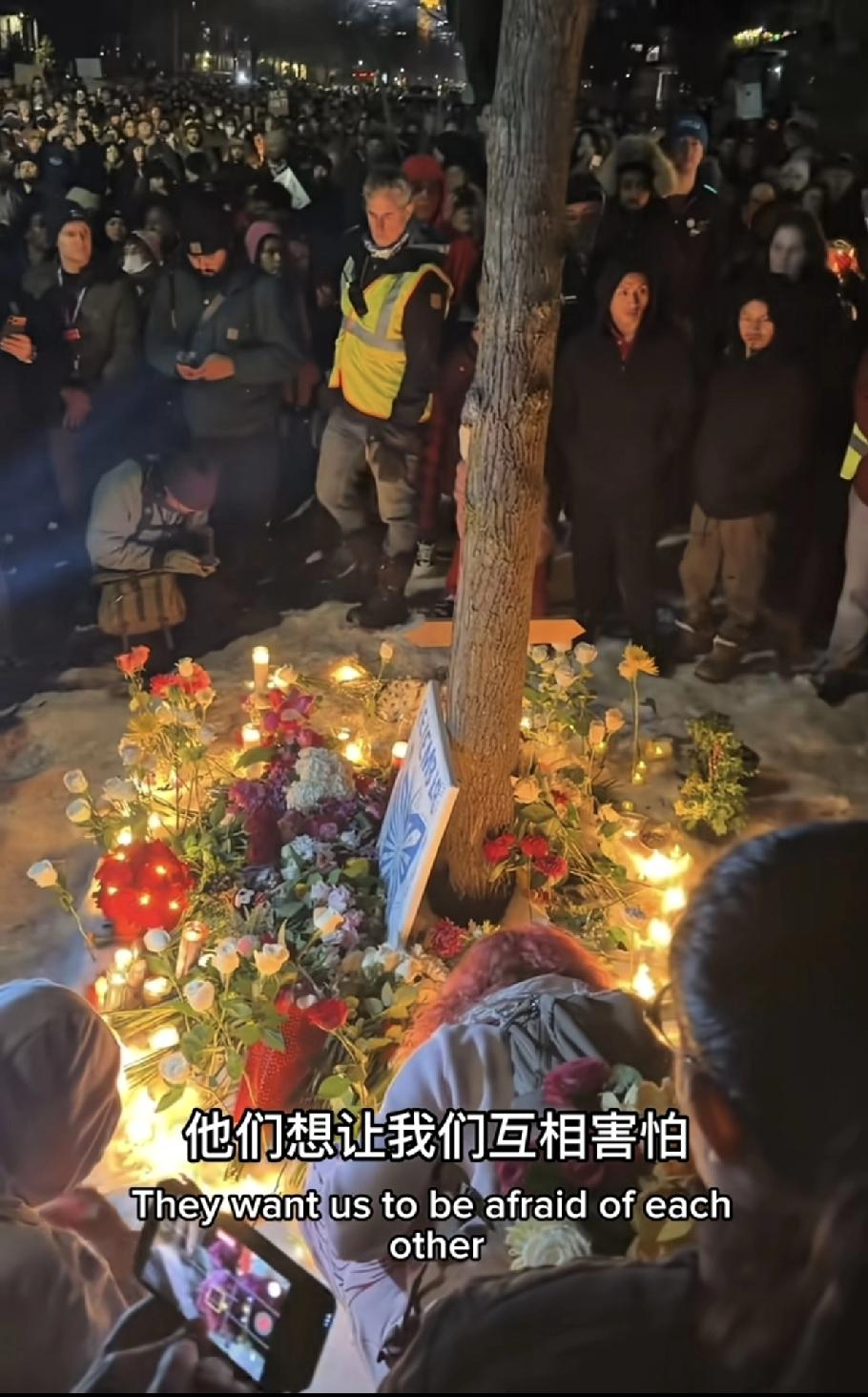 阿美莉卡家的懦夫哀思,照片,鲜花,蜡烛,音响,哀思几件套,然后一人再那调动情绪述说不公,马上一群懦夫在旁边嗷嗷叫,然后第二天上街又被ICE揍得嗷嗷叫。