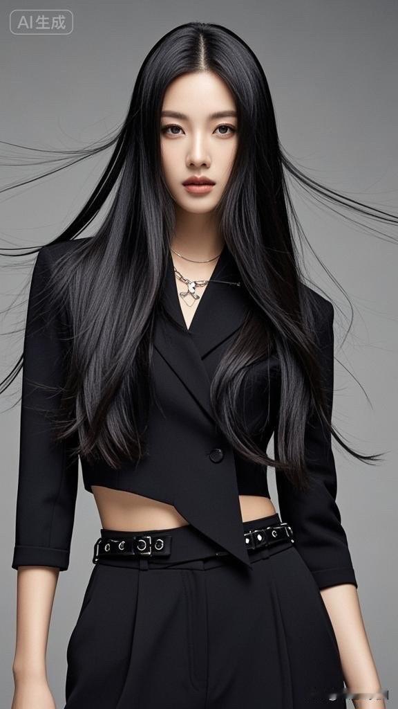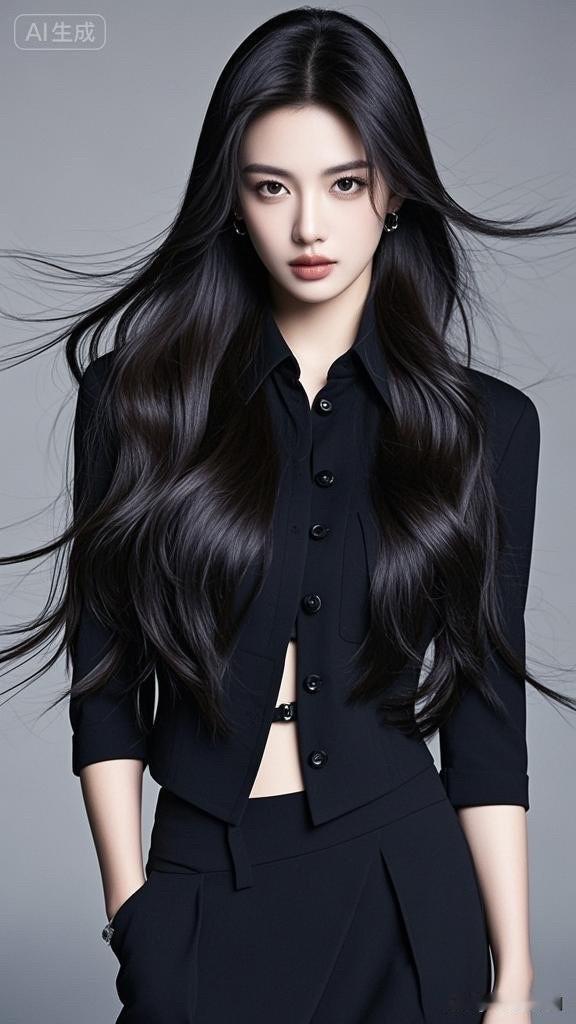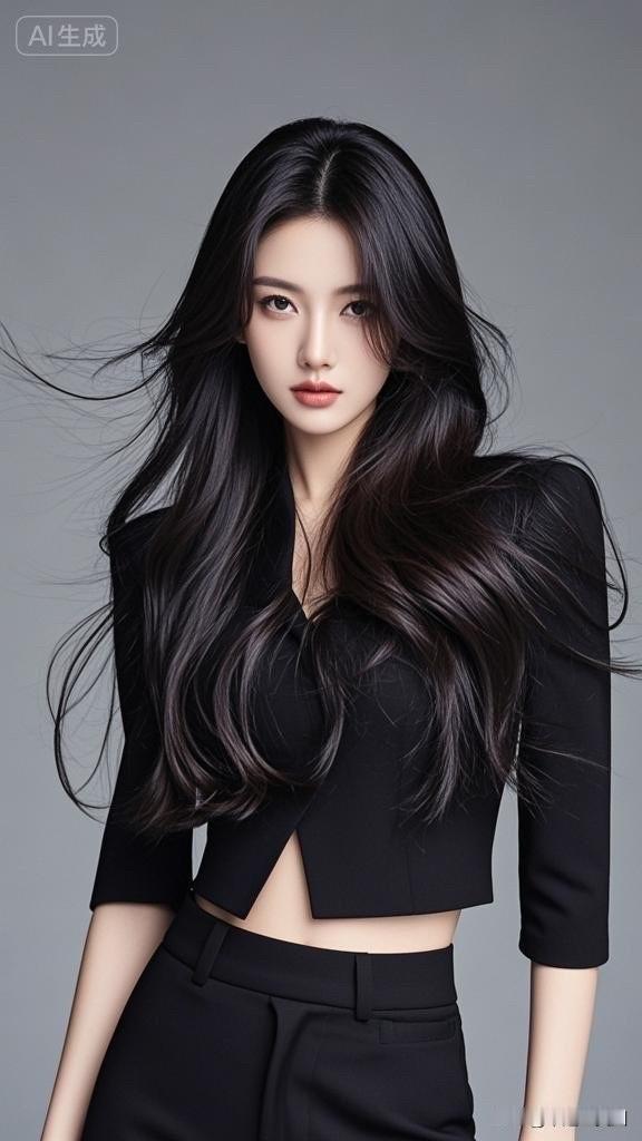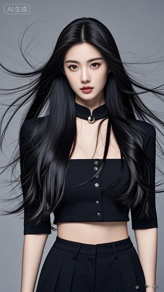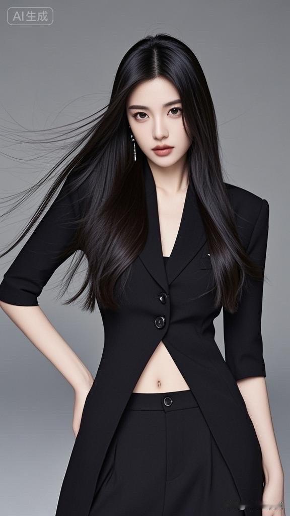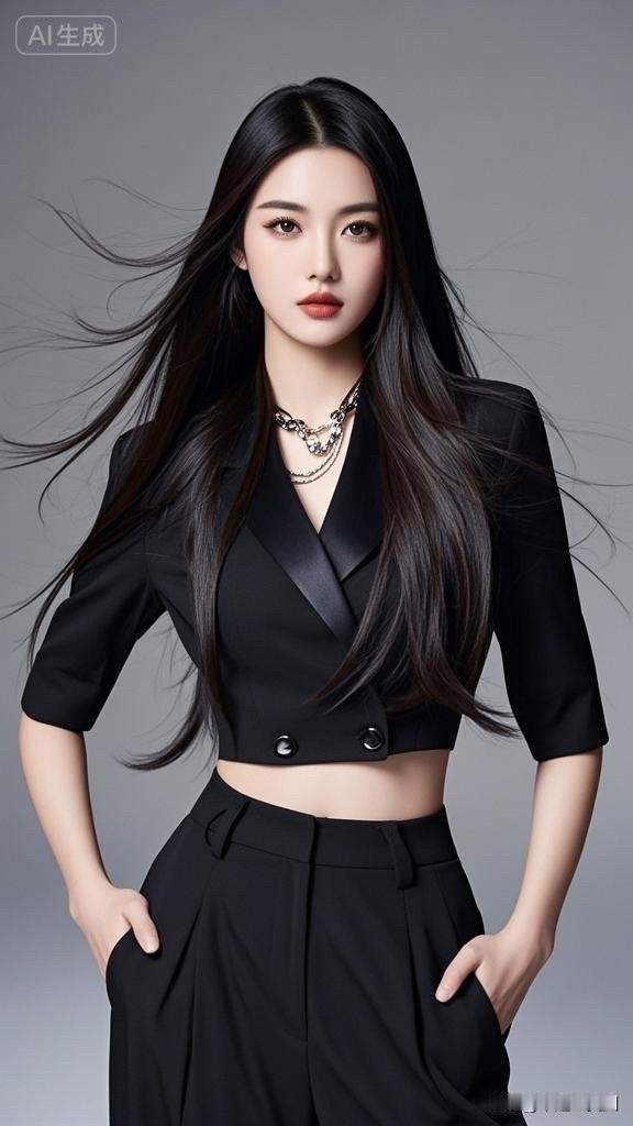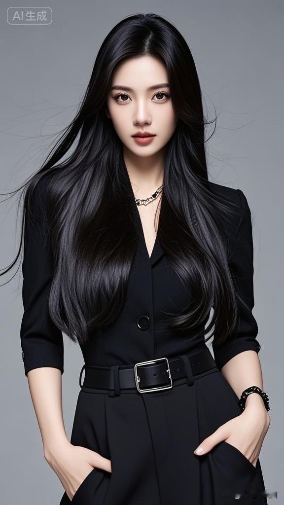 黑发红唇,优雅迷人,时尚黑裙,尽显魅力!