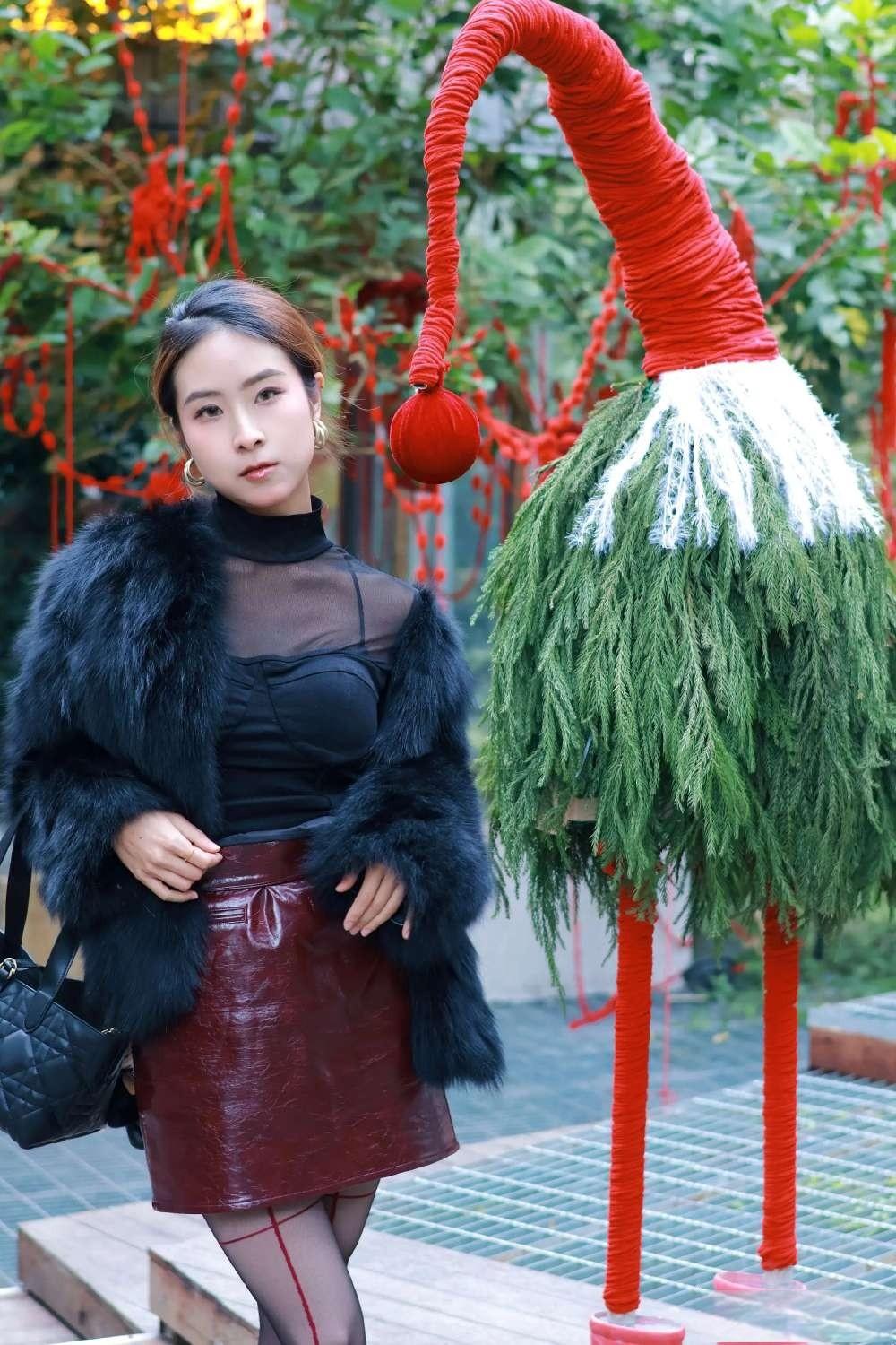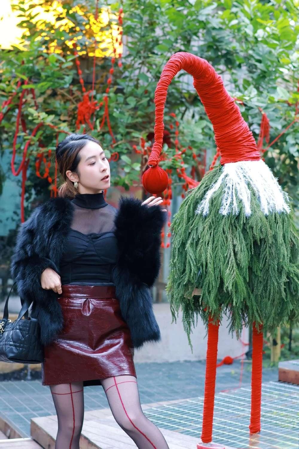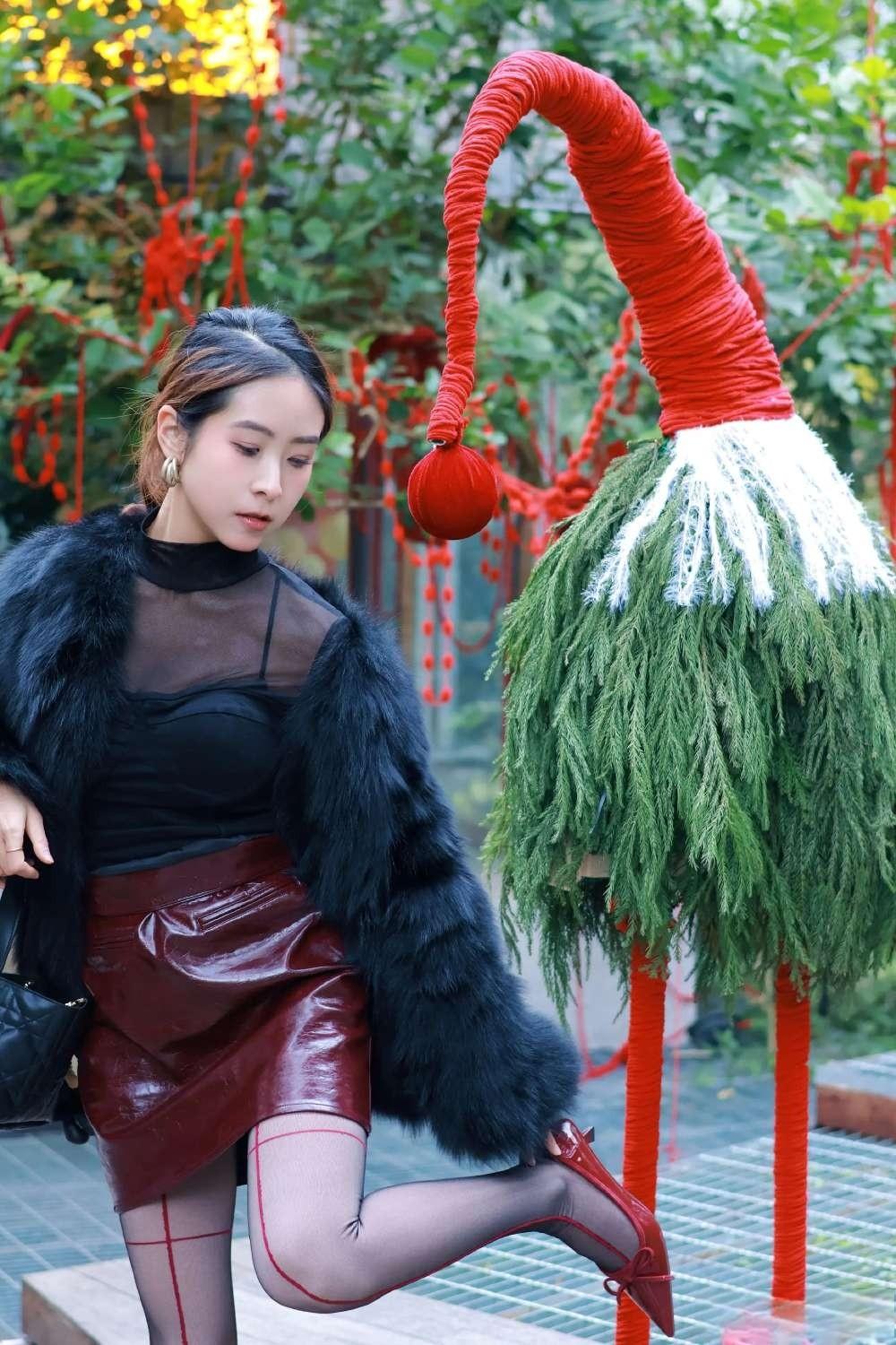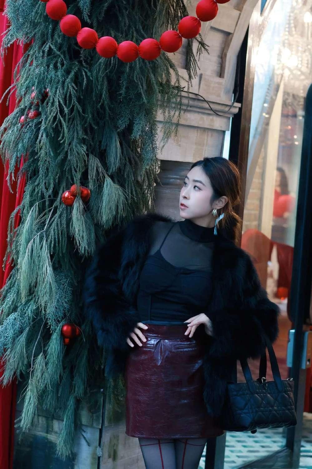 这套穿搭是华丽感的红黑风,把节日氛围与轻奢质感融合。黑色毛绒外套自带华丽气场,内搭透肤黑纱+酒红亮皮裙,露肤细节注轻熟感;红黑配色精准呼应圣诞装饰。 搭配红色漆皮鞋强化节日氛围,黑包添轻奢质感,和圣诞装饰的浓烈色调高度契合。充分展现穿着者华丽感的轻熟魅力。黑红色穿搭 黑毛绒上衣套装 氛围感穿搭 每日搭配分享·时尚穿搭