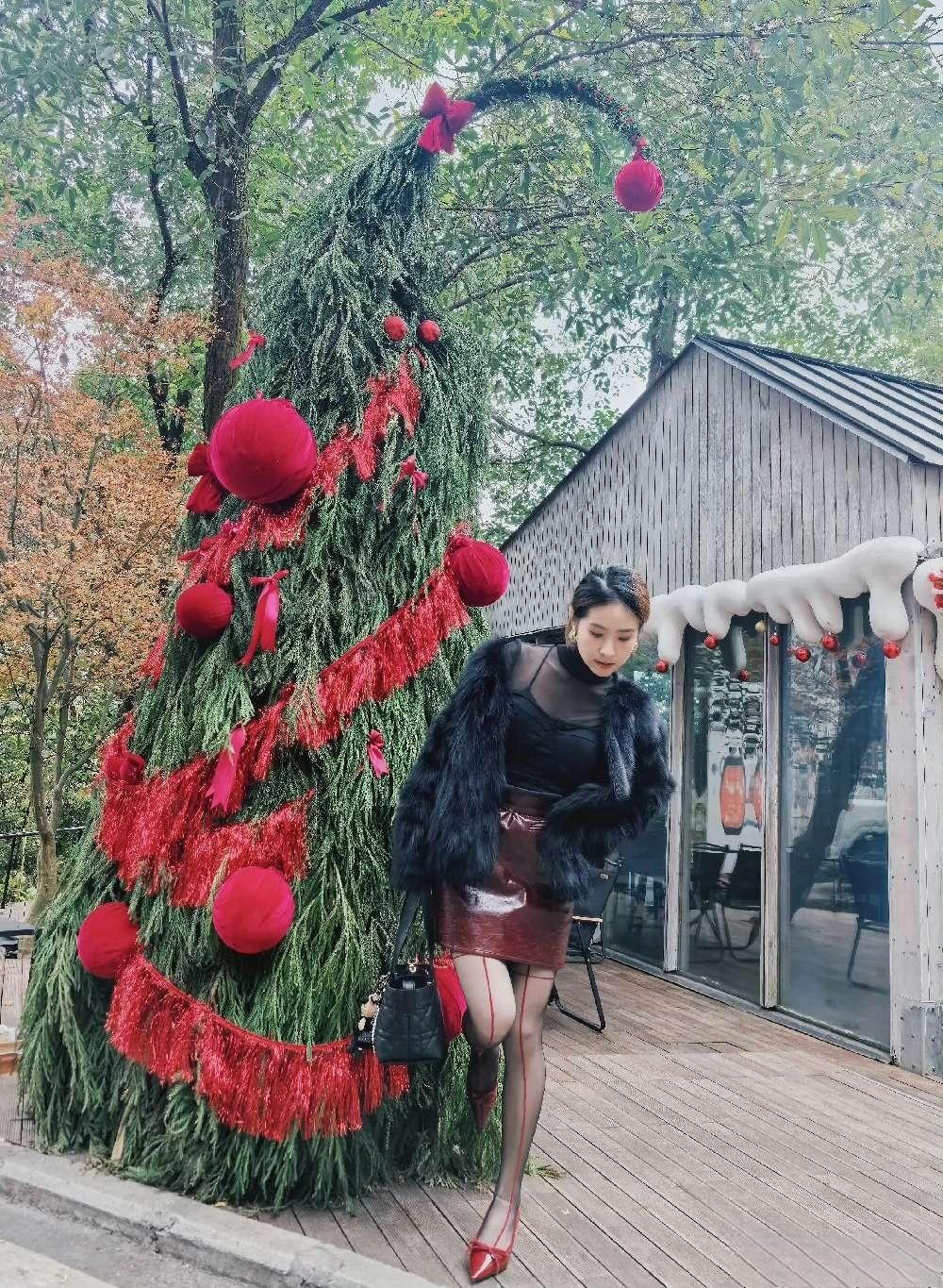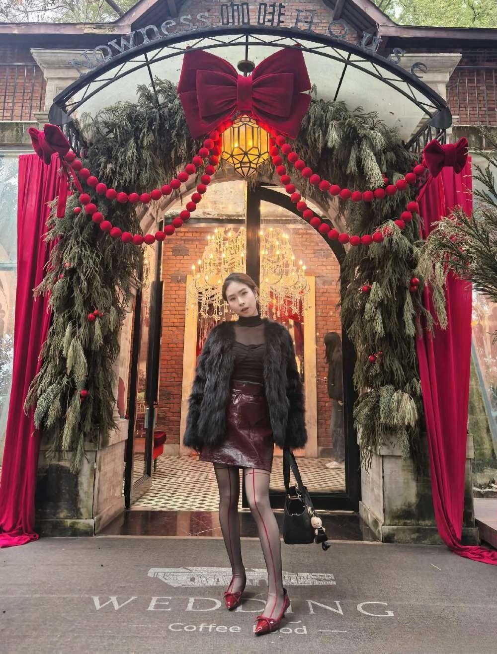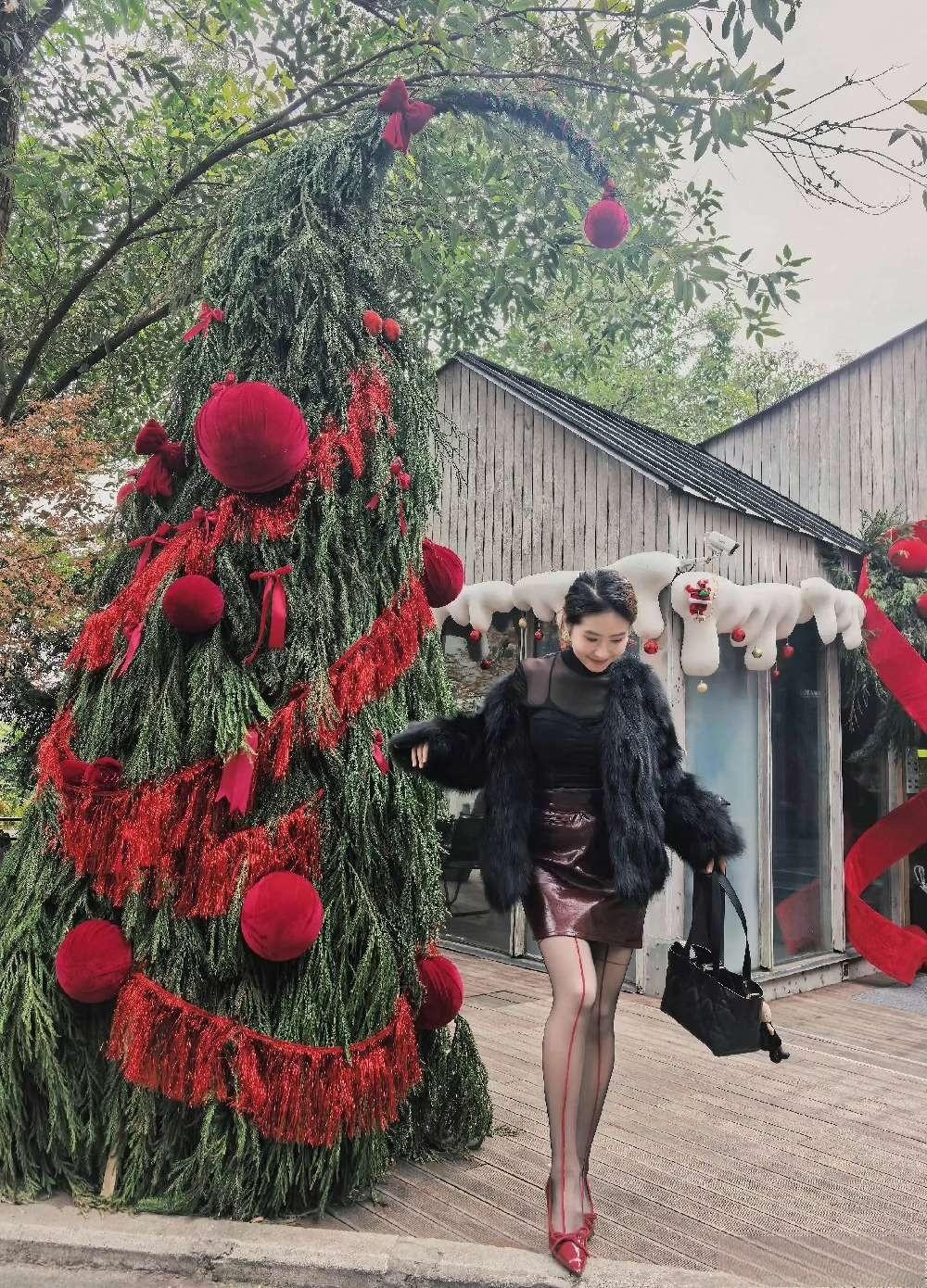 这套穿搭是华丽感的红黑风,把节日氛围与轻奢质感融合。黑色毛绒外套自带华丽气场,内搭透肤黑纱+酒红亮皮裙,露肤细节注轻熟感;红黑配色精准呼应圣诞装饰。 搭配红色漆皮鞋强化节日氛围,黑包添轻奢质感,和圣诞装饰的浓烈色调高度契合。充分展现穿着者华丽感的轻熟魅力。黑红色穿搭 黑毛绒上衣套装 氛围感穿搭 每日搭配分享·时尚穿搭