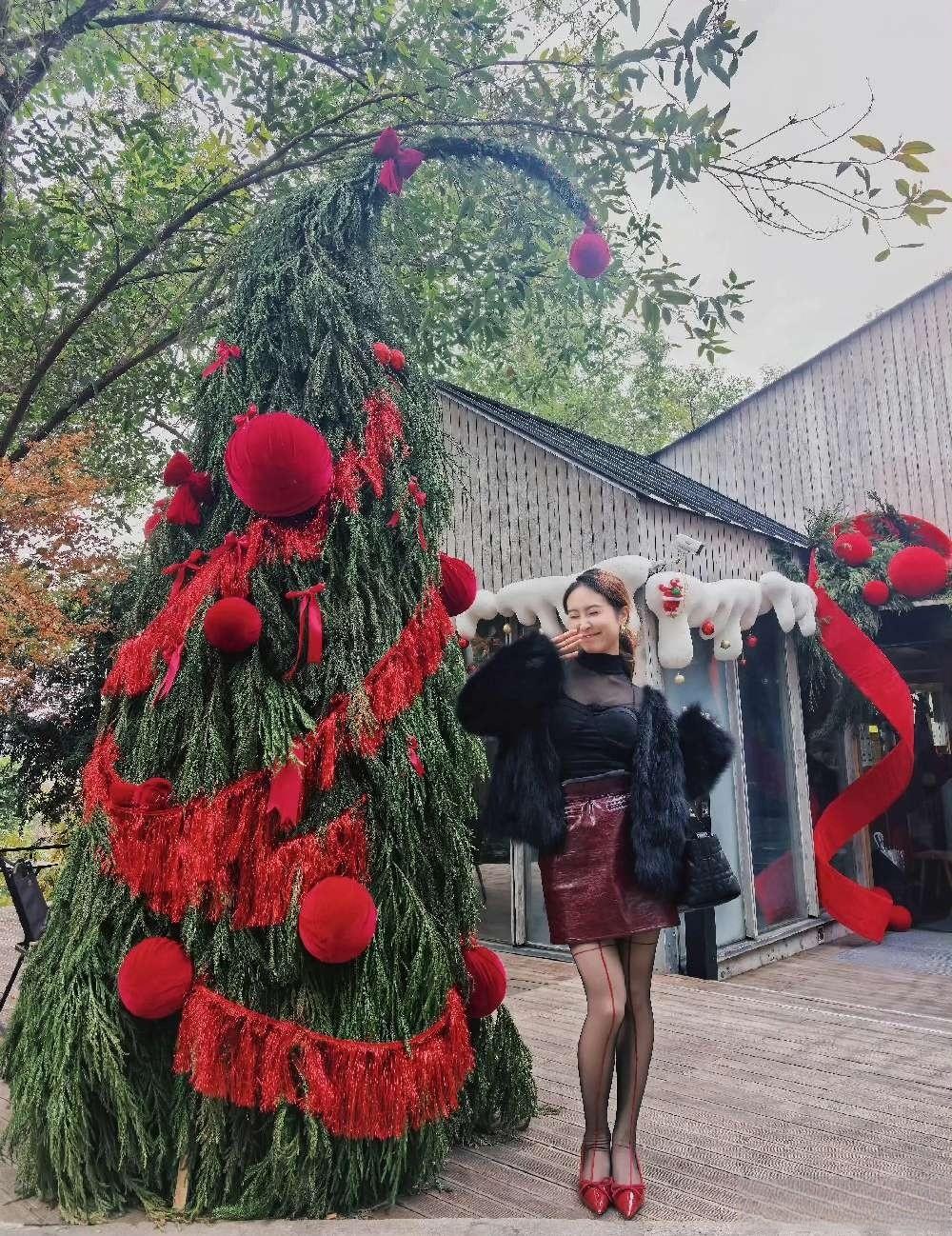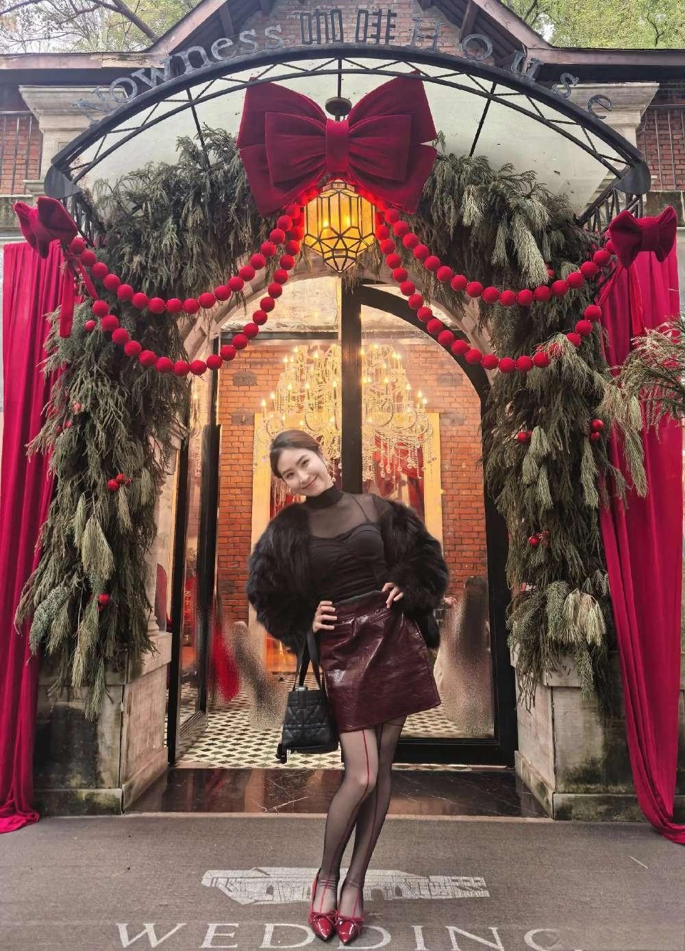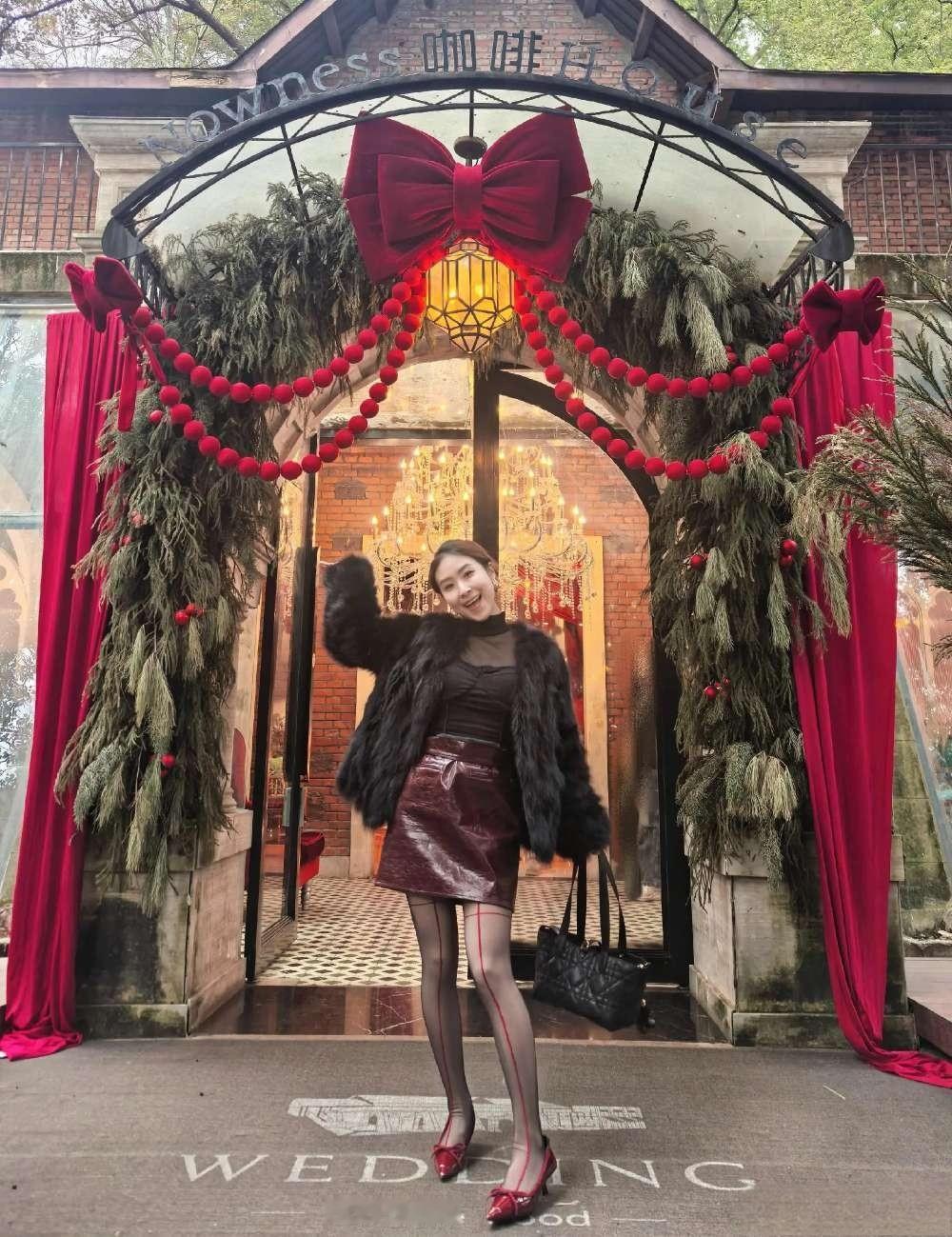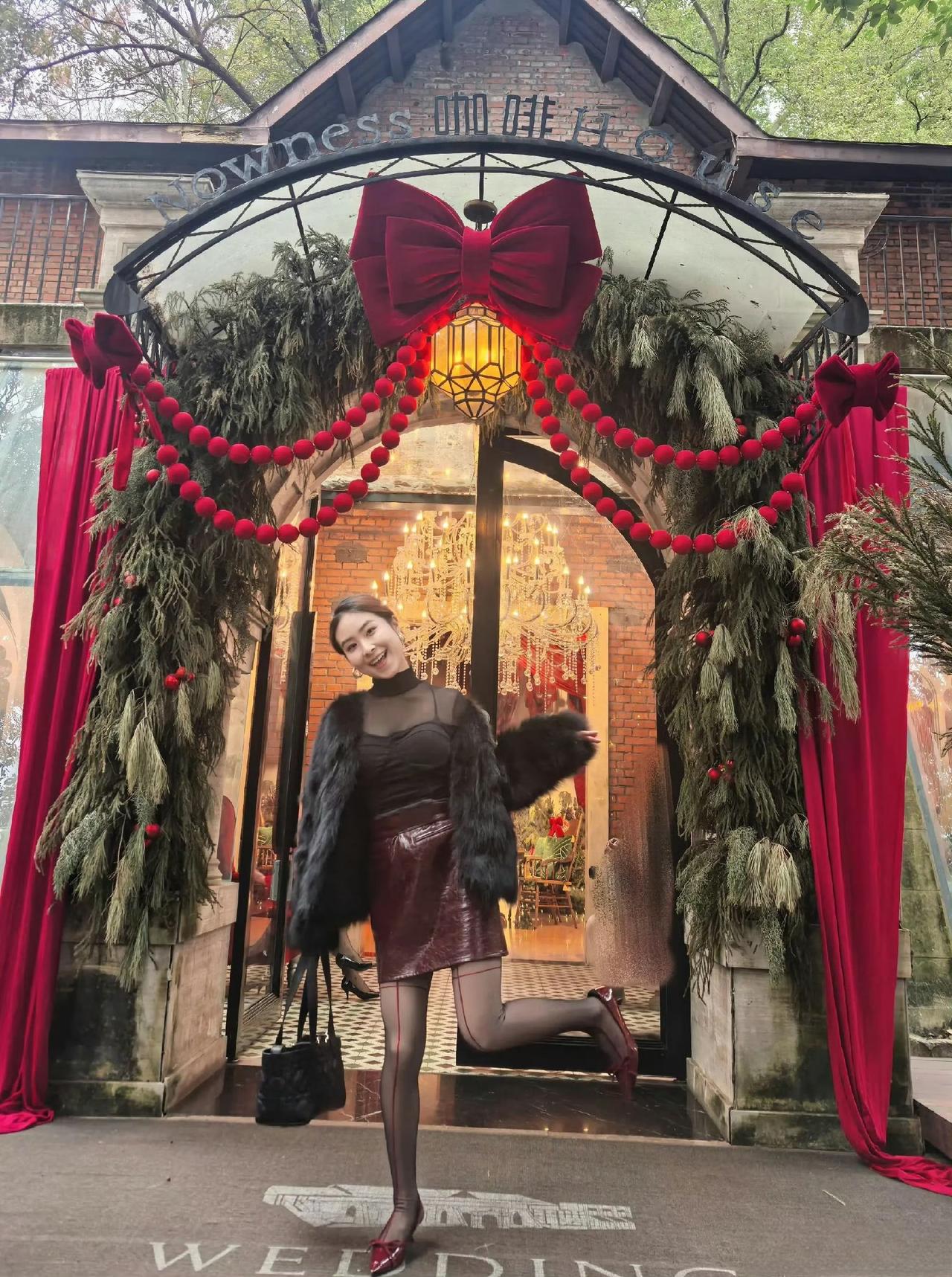 这套穿搭是华丽感的红黑风,把节日氛围与轻奢质感融合。黑色毛绒外套自带华丽气场,内搭透肤黑纱+酒红亮皮裙,露肤细节注轻熟感;红黑配色精准呼应圣诞装饰。 搭配红色漆皮鞋强化节日氛围,黑包添轻奢质感,和圣诞装饰的浓烈色调高度契合。充分展现穿着者华丽感的轻熟魅力。黑红色穿搭 黑毛绒上衣套装 氛围感穿搭 每日搭配分享·时尚穿搭