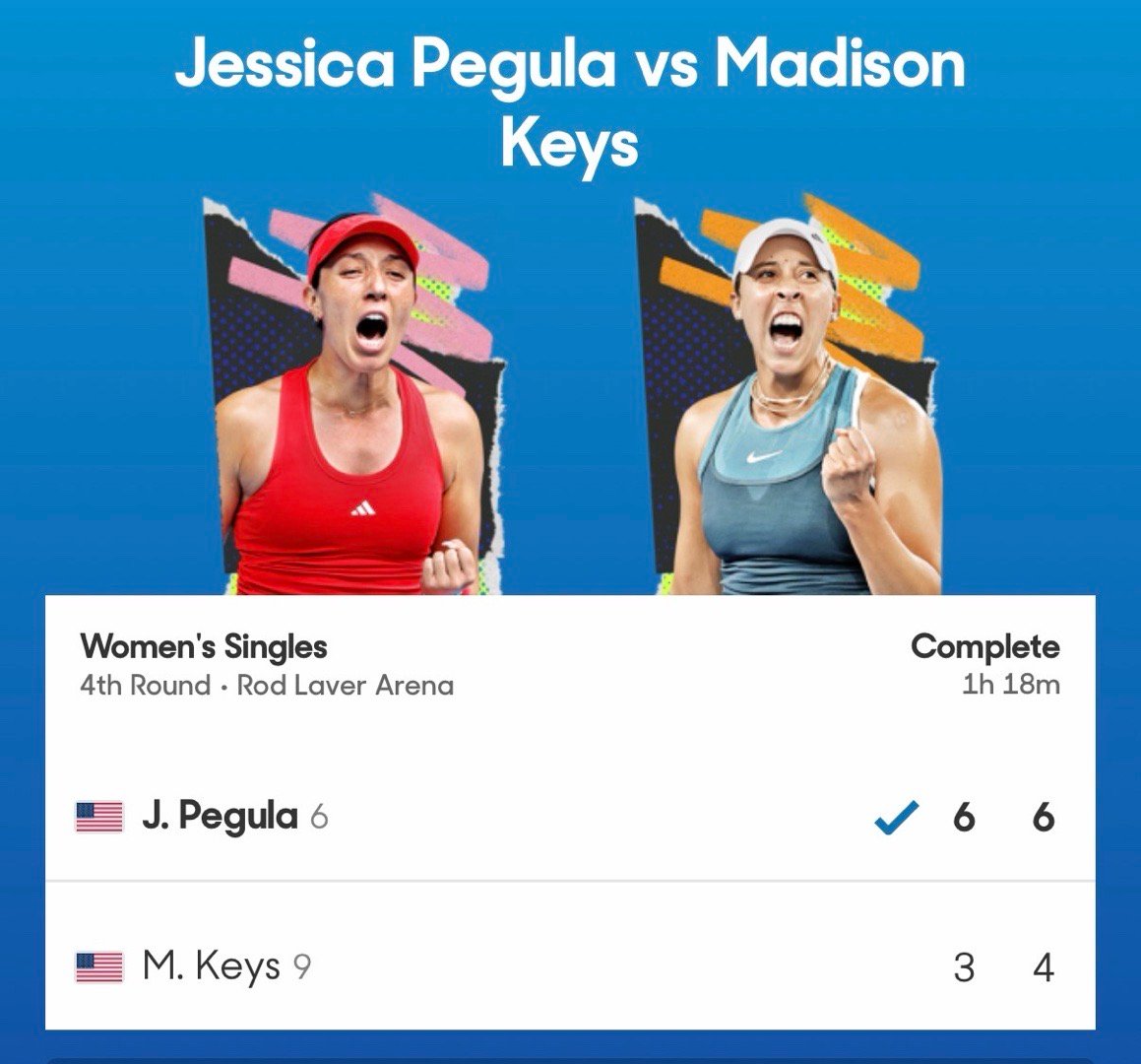 佩古拉淘汰卫冕冠军!澳网女单第四轮,6号种子佩古拉以6-3 6-4击败9号种子凯斯,终结了后者的卫冕之旅。下一轮对阵王欣瑜vs阿尼西莫娃的胜者!2025年澳网冠军凯斯排名跌出Top15……(王欣瑜赢过大富)这很澳网澳网2026 佩古拉2比0凯斯