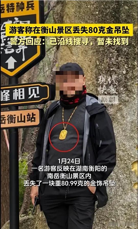 湖南衡阳,男子的80.99克的金吊坠掉在了景区,这可是十多万元的东西!他十分焦急